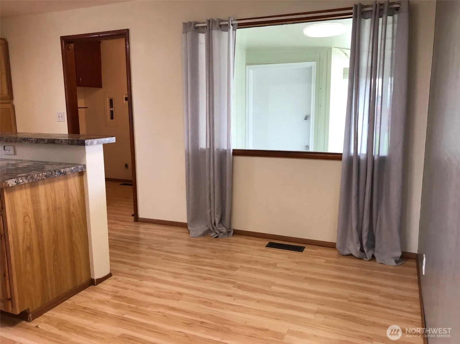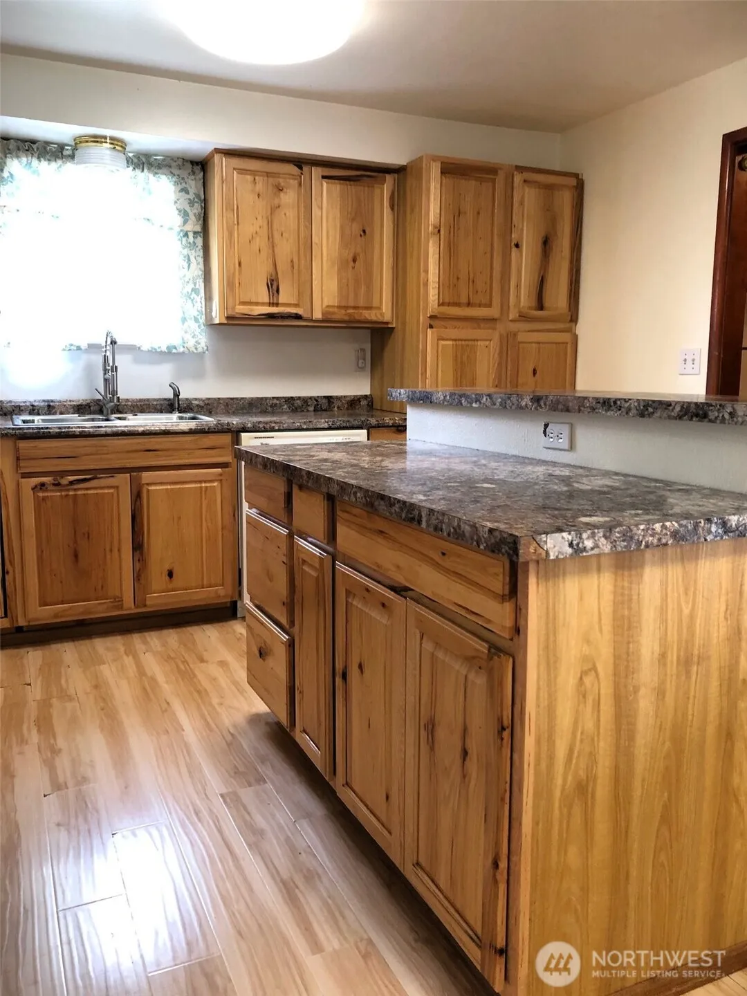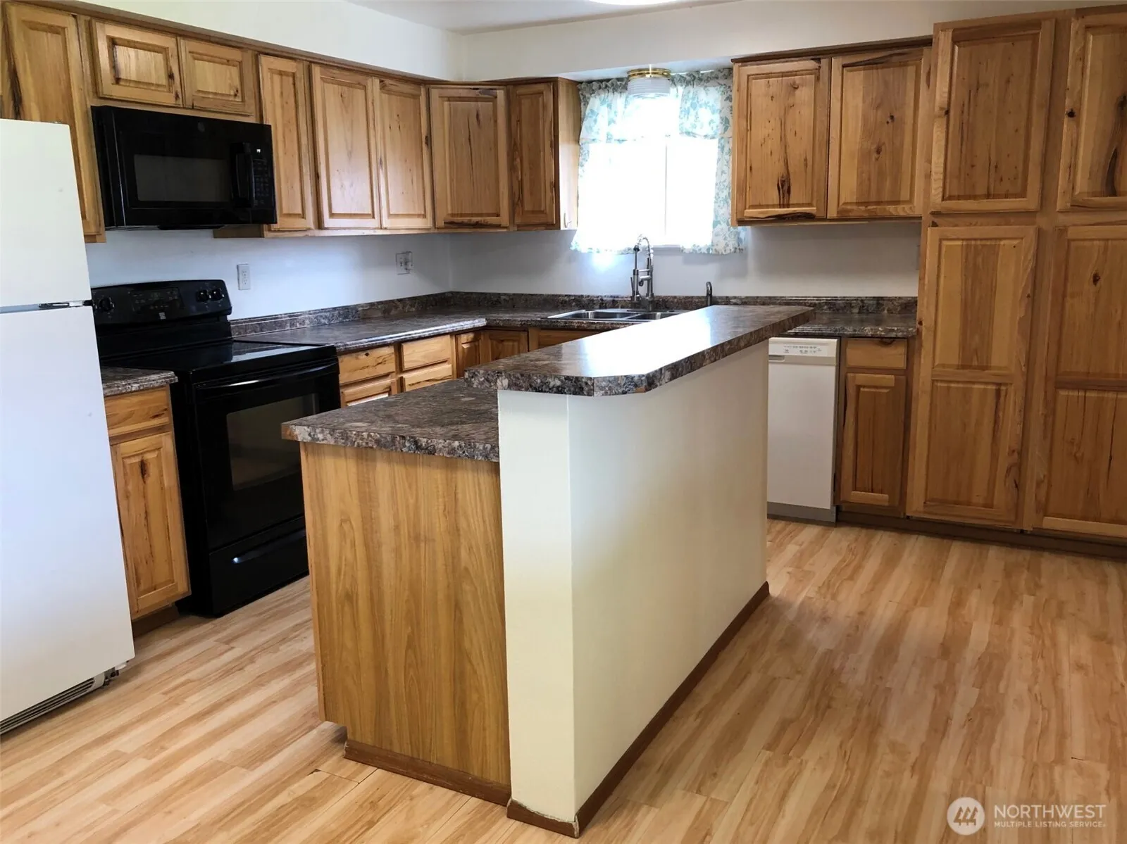 Charming 1352 sqft Home – Move-In Ready! Welcome to this 3 bedroom, 1.75 bath home offering comfortable living space. This home features a remodeled kitchen with updated counter tops, beautiful kitchen cabinetry, island, & appliances that incl. microwave, flat top range, dishwasher & refrigerator. Enjoy the large picture window in the living room & freshly painted. Central heat/air provides year around comfort. Step out to the fenced backyard with a covered patio that is just in time for spring & summertime barbeques, alley access & underground sprinkler syst. There is a 375 sqft basement with exterior access for extra storage & overflow. Whether you’re buying for the first time or looking to downsize this home offers comfort & easy living.