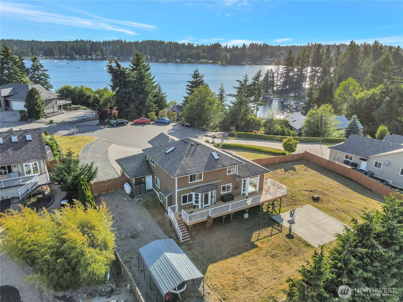BIG PRICE DROP! Motivated Seller! Beautiful Home on a Large Lot in a GREAT neighborhood just off Lake Goodwin. Views of the lake from various points on the property. Enjoy your spacious deck overlooking your .49 acre lot ready for entertaining, gardening. Surprisingly private! New appliances in kitchen, beautiful granite countertops. Formal dining room, beautiful woodwork throughout the house. A two year old Heat Pump keeps it comfortable. Extra big gate in front and rear end of property, room for an RV, detached carport for your boat or toys. Concrete slab ready for hot tub, or a shop, or maybe an ADU (Buyer to verify). Located within the coveted Lakewood School District, near Wenberg State Park and the Lake Goodwin Public Park.