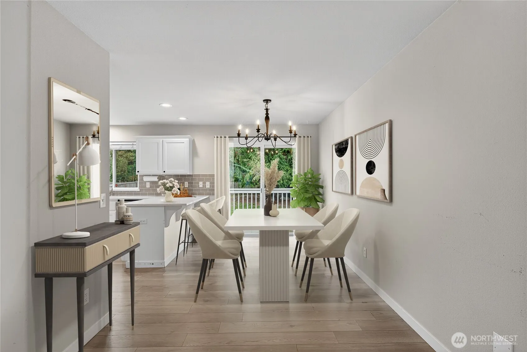 Located in a desirable Lake Stevens community, this fantastic home shines w/ tasteful updates & well-designed layout. Features include modern white kitchen, updated LVP flooring, stylish bathrooms & fresh neutral tones throughout. The upper level includes a bright living area w/cozy gas fireplace. The kitchen offers ample quartz counters & newer SS appliances. Entertaining made easy w/ dining space just off kitchen, two bedrooms plus spacious primary suite. Lower level provides a generous bonus room, additional bath & garage access. The backyard boasts newer hot tub, metal gazebo & backs to open space, offering extra privacy & feel of a large yard. Close to top-rated schools, restaurants, shopping & easy access to I-5, Hwy 2, and Hwy 9.