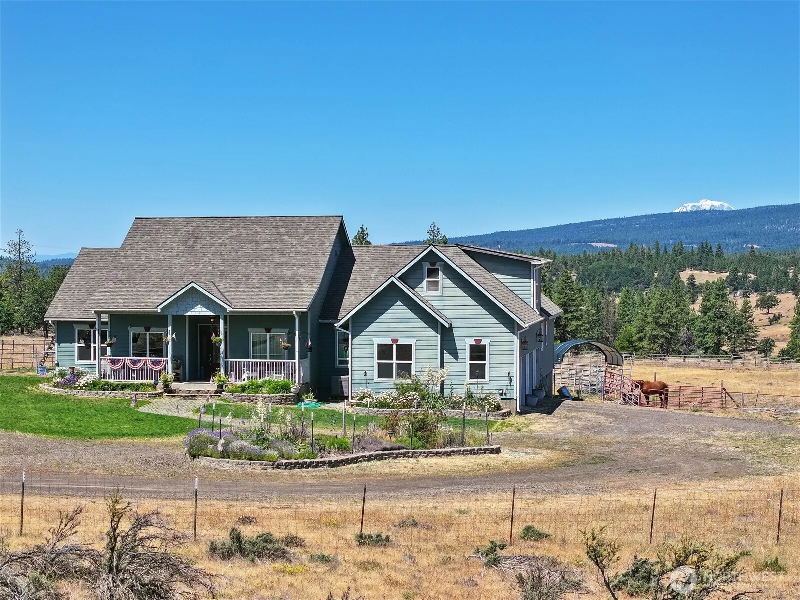 Luxury, privacy, and comfort converge in this beautifully designed custom home on 5.45 serene acres with stunning Mt. Adams views. Enjoy 2,900+ sq ft, 3 spacious bedrooms with ensuite baths, 3.5 bathrooms, a dedicated office, and a large bonus room. Soaring coffered ceilings grace the formal dining room and elegant primary suite. The chef’s kitchen features granite counters, stainless steel appliances, a convection oven, walk-in pantry, and breakfast bar. Relax by the propane fireplace or take in sunsets from the screened-in porch or expansive deck. Cross-fenced yard is pet-ready. Wildlife, privacy, and peaceful living await.