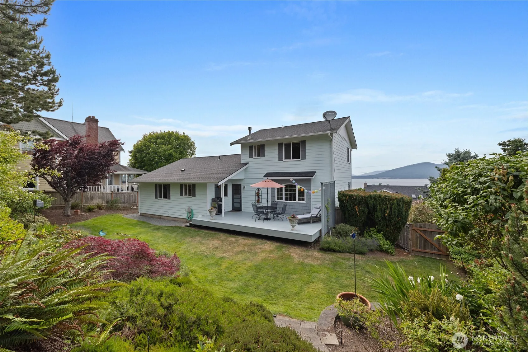 Enjoy stunning water views from the bay window in the light-filled living room. The kitchen offers ample counter space, perfect for daily living or entertaining. A main-level bedroom with ensuite adds comfort, while the upstairs has been transformed into a spacious new primary suite with a built-in closet system. Downstairs, the workshop can easily convert back into a 4-car garage. Step outside to a backyard made for memories—gather around the firepit and unwind. A new roof is set for installation by the end of July. Located close to the ferry, this home combines charm, flexibility, and views in a truly special setting.