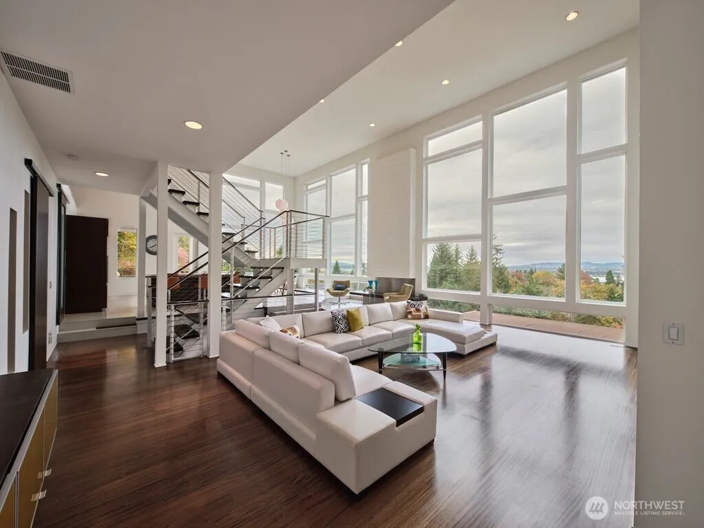 Perched high in the Vancouver Heights, this timeless modern home captures the best of NW living. From the moment you walk in, the views take your breath away—stretching across the Columbia River to the sparkling lights of Portland. The open kitchen and living spaces flow effortlessly, filled with natural light that pours through walls of windows and dramatic ceilings. Every detail has been thoughtfully designed, from the elegant staircase with its sleek built-in bar to the mid-century modern touches that give this home its character. The owner’s suite feels like a retreat, offering both luxury and tranquility. Sold fully furnished and beautifully decorated, this home is turnkey and move-in ready. Immaculate, stylish, and unforgettable.