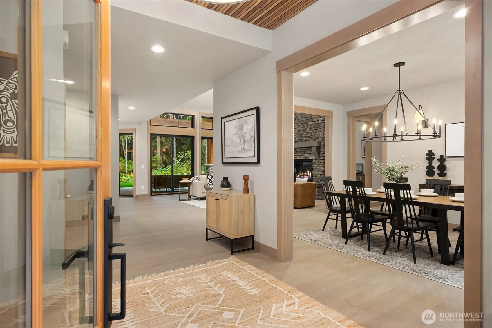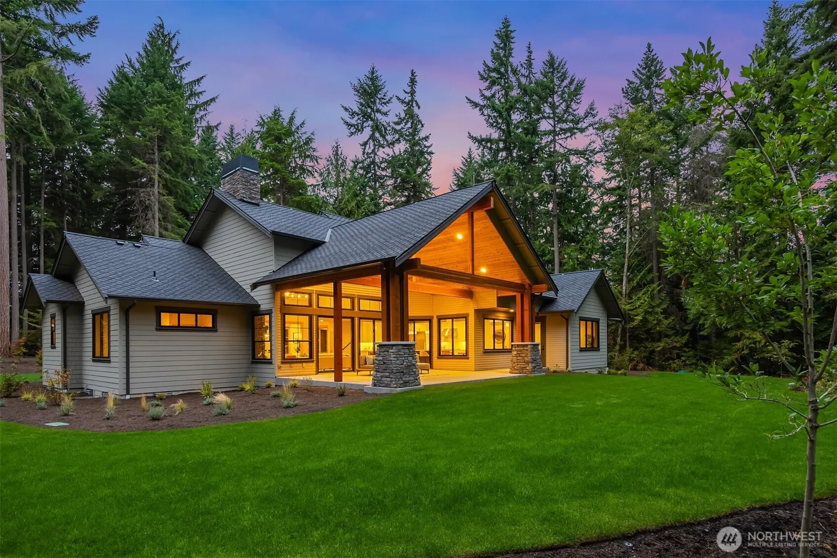 Exquisite new construction by reputable local builder, Northwest Signature Homes. Experience a rare opportunity to own one of Kingston’s premier estates. Newly built, this 3,418 sqft custom home rests on 4.75 serene acres less than a mile from White Horse Golf Club and just 8 minutes to the ferry. Soaring ceilings, walls of windows for natural light, and refined cedar, fir, and hemlock details create timeless Northwest elegance. A chef’s kitchen with Thermador appliances, dual ovens, and a one-piece quartz island anchors the open living spaces, while the primary suite offers a spa-like retreat with a custom built closets and a luxurious bath. Multiple fireplaces, covered outdoor living, and cutting-edge systems elevate comfort year-round.