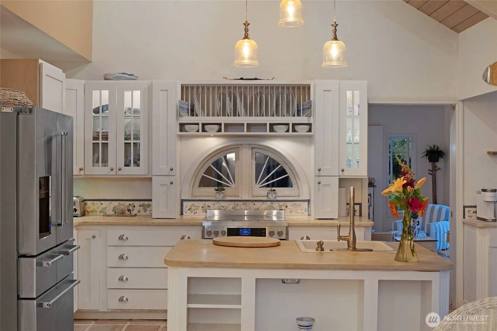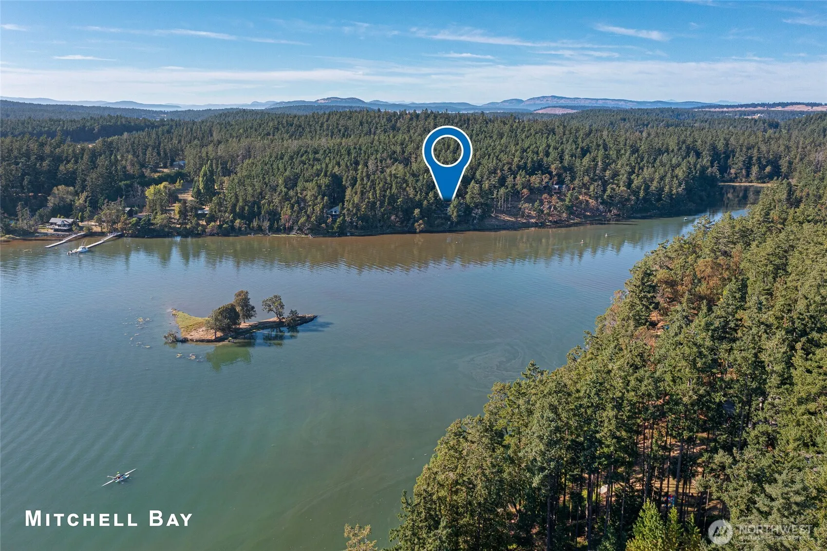 Waterfront home on Mitchell Bay offers charm, comfort, and stunning views. The main house features two primary bedrooms with en-suites, high ceilings, a kitchen with dining nook, and French doors that open to a spacious deck overlooking calming tidelands. Enjoy modern updates including a newer roof, fiber internet, and a sophisticated rainwater catchment system. A detached guest studio with sleeping loft provides additional space for visitors or creative use. Property includes tidelands, making this an ideal retreat to relax and take in the serene bay setting.