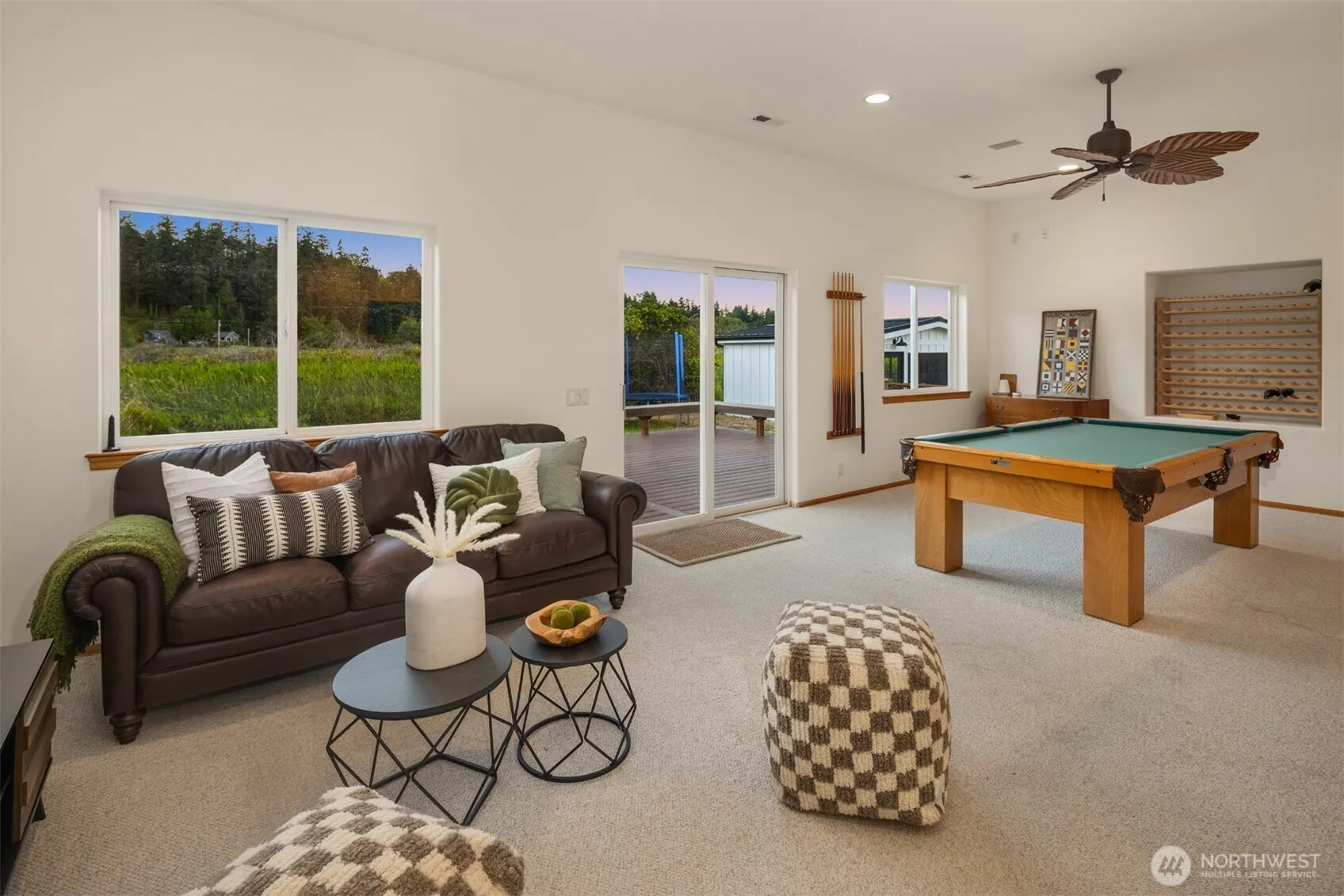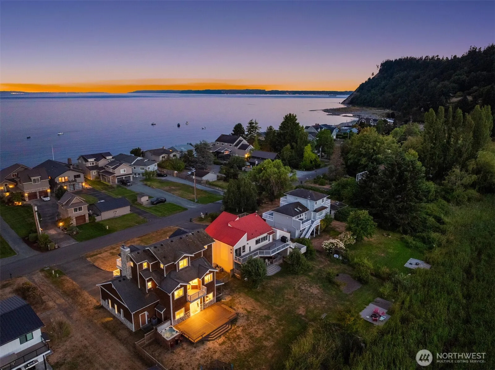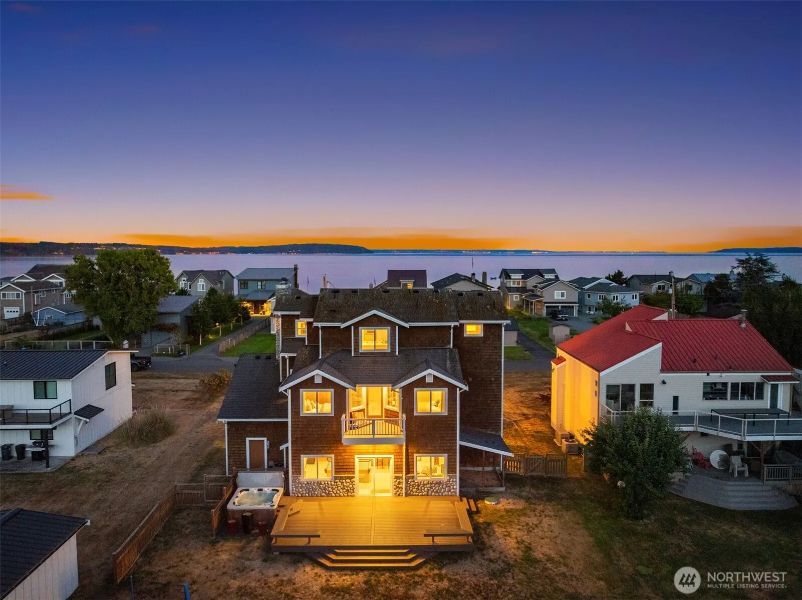 Imagine your island escape—where Mount Rainier and Puget Sound greet you each morning and sunsets paint the sky over Useless Bay. The entry level offers a bunk and rec room with pool table, bar, and deck overlooking Deer Lagoon Wildlife Sanctuary—an ever-changing show of eagles, herons, and seasonal visitors. The main level features a spacious kitchen open to dining and living areas with a rock fireplace and view decks. Upstairs, the primary suite is a luxury retreat with private sound-view deck and sitting area by the fire. Stroll to Double Bluff Beach and dog park with miles of shoreline to explore, and the option to join Useless Bay Golf & Country Club.
