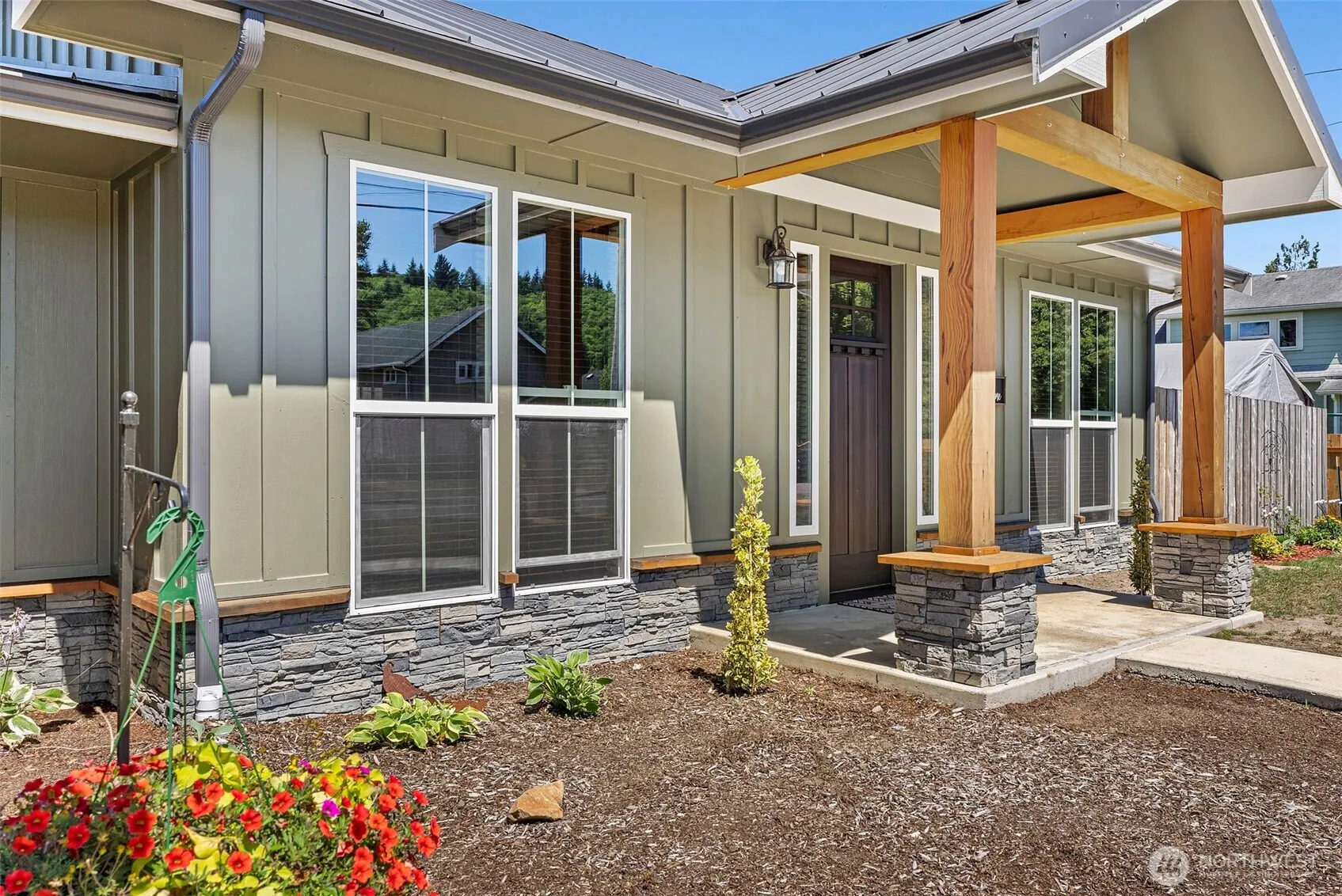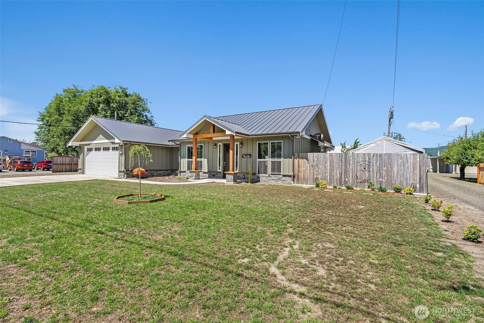 This recent build showcases modern luxury and high-end craftsmanship throughout. This 3 bed, 2.5 bath home features radiant in-floor heating, soaring ceilings, and a seamless open-concept layout perfect for entertaining. The designer kitchen boasts quartz countertops, custom cabinetry, a walk-in pantry, and a large island that flows into the spacious living and dining areas. The elegant primary suite offers a spa-like retreat with a soaking tub, walk-in tile shower, and oversized walk-in closet. Built-in storage enhances functionality in the hallways and laundry room. Enjoy year-round outdoor living on the covered back patio. Thoughtful finishes, efficient design, and timeless style make this home a true standout. Furniture is negotiable!