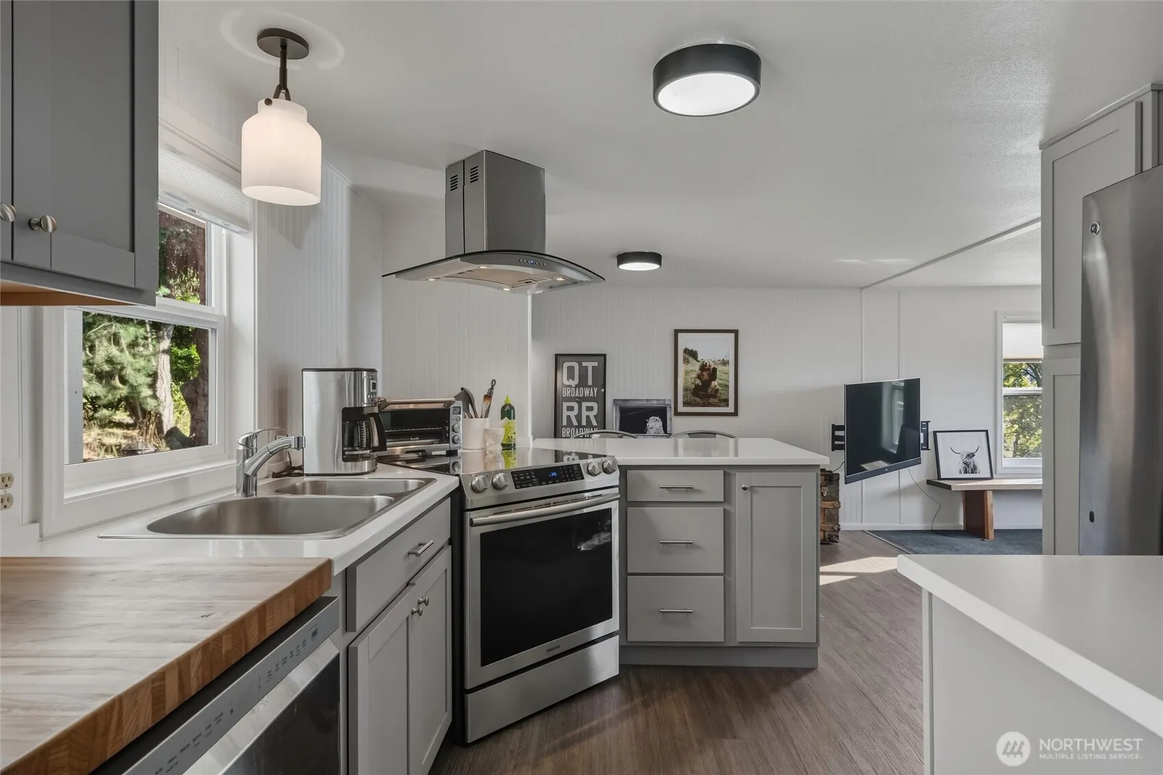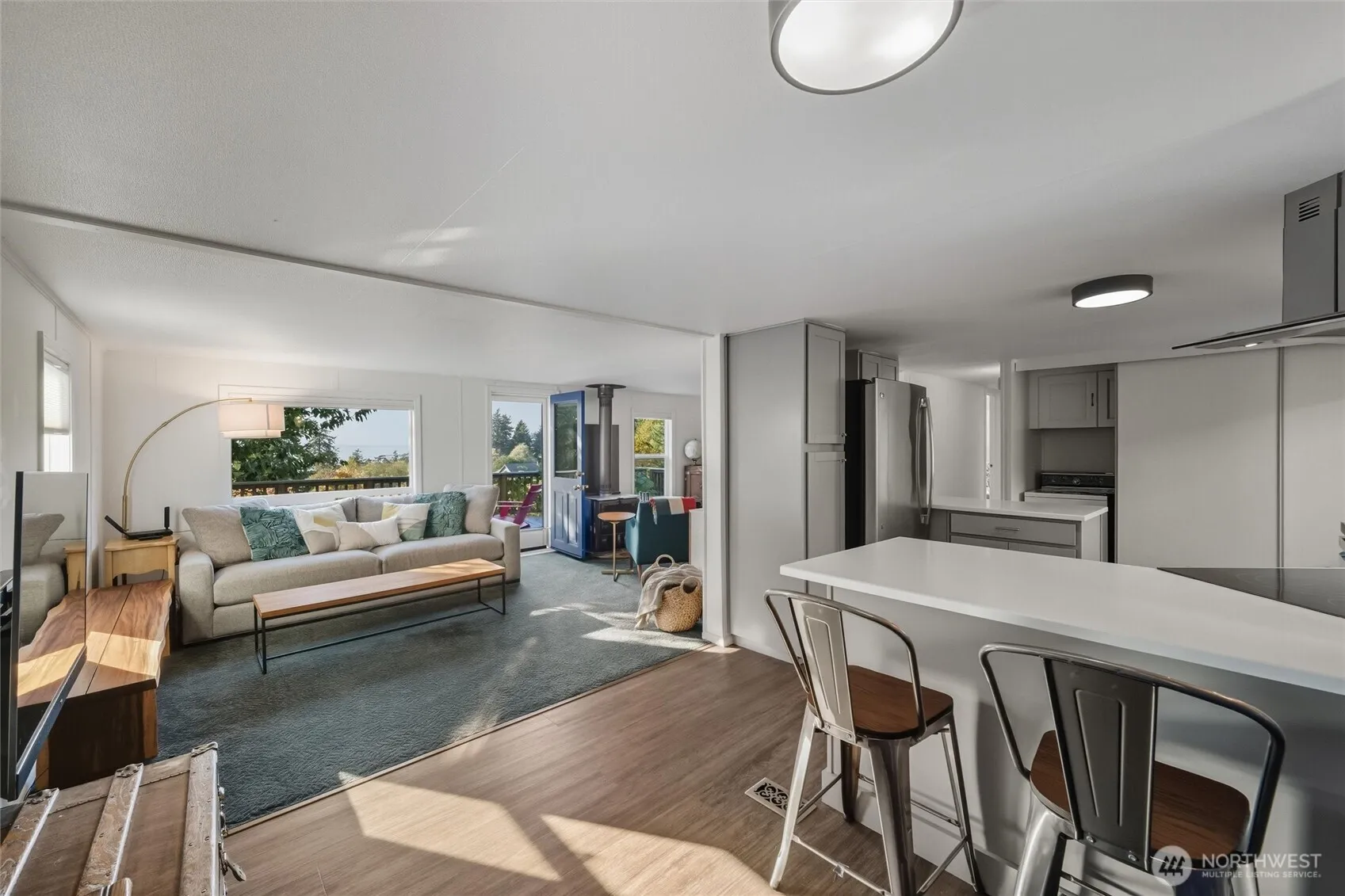 The location can’t be beat! Beautifully updated 2BD/1.5 bath home with unobstructed pastoral, water, and island views overlooking the Strait of Georgia toward Clark, Barnes, and Orcas Islands. Enjoy fresh updates throughout, including a stylish kitchen with Corian countertops, stainless appliances, lighting, new flooring, carpet, & updated bath. Oversized Andersen windows, fresh paint, and a beautifully crafted covered deck enhance the appeal. Soak up all-day sun and take in outstanding views—just a short walk to the beach, store, and ferry. Additional dry, covered space ideal for workouts, art, or gardening plus a storage shed. Adjacent vacant lot with water connection, driveway, and 3BD septic also available.