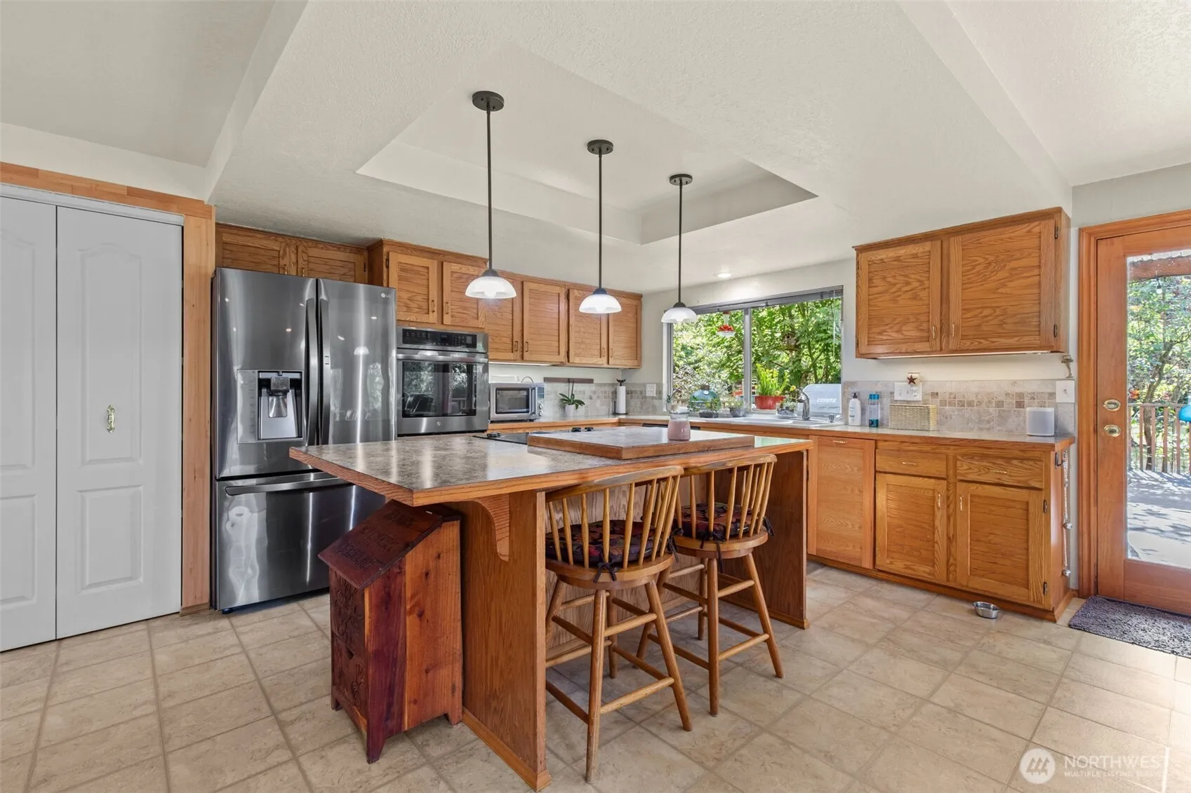 BLACK FRIDAY PRICE! MOTIVATED SELLERS! Stunning 3 bed 2.5 bath well-maintained 2-story home sits on a level lot with mature fruit/apple trees, raised garden space, 2 lrge shops, lush landscaping. 400 amp. NEW ROOF (9/2025) Inside boost open kitchen-family room combo and living room with soaring skylight ceilings wood burning fireplace, Large deck w/hot tub, built-in cooking station, attched 2-car garage and HV EV charging avail. RV parking w/power hookup and stunning views of mountains, territorial & city. Dbl-pane storm windows allow for natural lighting. Upstairs host the primary en-suite bedroom boasts another gas fireplace w/walk-in closet, new tiling and fresh fixtures. Including 2 full size guest bedrms full-guest bathrm.