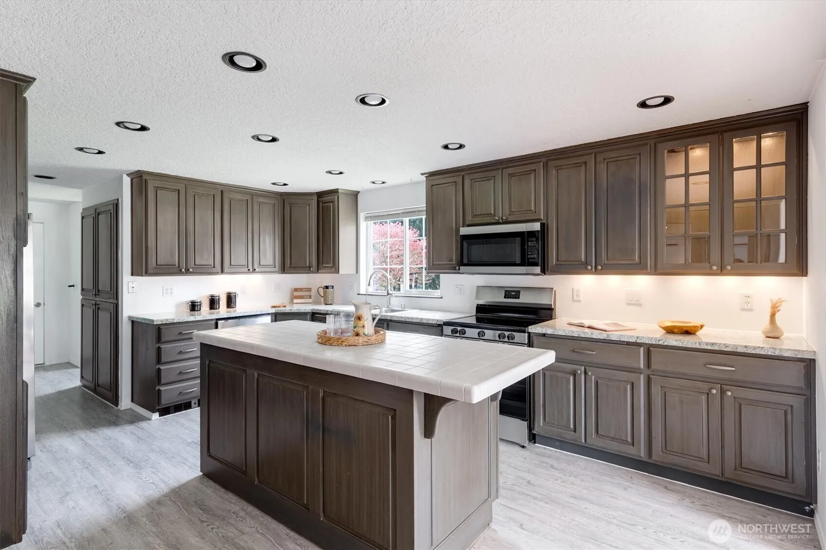 Move In Ready & Packed with Value! This spacious 2,400+ SF home offers 3 bedrooms, 3 baths, and exceptional parking options, including an attached finished 2-car garage, detached 2-car carport, and an expansive 4-car shop; perfect for hobbies, storage, or projects. A 659 SF finished guest suite provides flexible living space with a bonus room, kitchenette/wet bar, and ¾ bath; ideal for guests, multi-generational living, or a private workspace. The open, airy kitchen features stainless steel appliances, an island with seating, and flows into a generous dining area. Enjoy multiple living spaces, including a bright sunroom, main floor office/den, rec room, and comfortable gathering areas throughout. Step outside to a large deck overlooking a tranquil koi pond, fenced yard spaces, and two versatile outbuildings. Additional highlights include newer roofs and efficient ductless heating and cooling. All situated on nearly an acre corner lot with public water and on site septic; offering space, flexibility, and endless possibilities!
