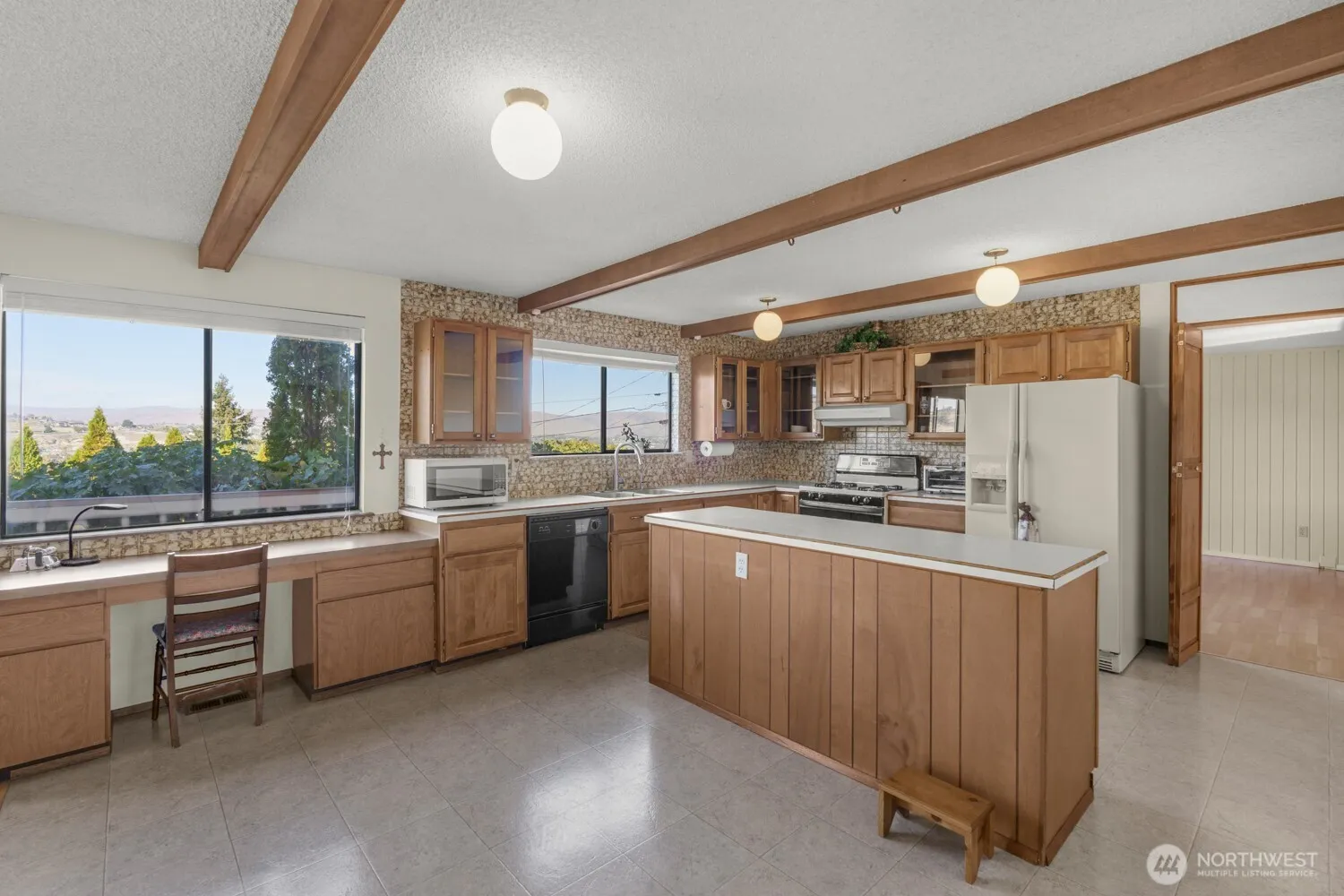 Stunning home w/ gorgeous city & mountain views. 3 bedrooms & 2 full baths. Newly painted large deck for morning coffee. Fully fenced backyard w/ terraced lawn, powered storage shed on foundation & space for garden. Home w/ laminate wood flooring in main space & vinyl in bathrooms, making it great for pets or allergy-friendly living. Formal living room w/ wood-burning fireplace. Family room w/ wood stove. Kitchen w/ island, pantry & built-in desk for working from home. Dining w/ sliders to deck. Primary suite w/ dual walk-in closets, private bath w/ jetted tub, double sinks, shower & water closet. Circular drive w/ RV space & 1,000 sqft loft above garage for storage, gym or studio. New high efficiency furnace in Dec. 2024 for efficiency.