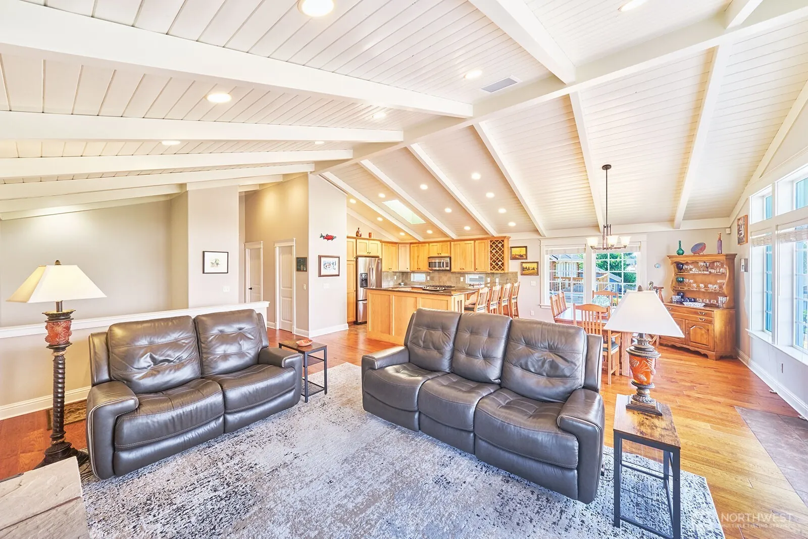 LUXURY BUILDER’S OWN architect-designed ocean view home ideally located at the trailhead of the 8-mile Discovery Trail and just a short walk to the nearby golf course or gym, with indoor pickleball just up the road. Thoughtfully crafted with a reverse floor plan to maximize light and capture ocean views, this elevated cedar-shingled retreat offers privacy, flexibility, and intentional coastal living across three levels. The top-floor great room is the heart of the home—soaring, light-filled, and anchored by a stunning propane fireplace—creating an inviting space for entertaining, sunset gatherings, or quiet winter weekends watching the storms roll over the Pacific. The spacious primary suite features a granite bath and private east-facing deck for peaceful morning coffee. The middle level offers a 2nd primary suite, third bedroom, utility room, and expansive family room opening to a covered deck—ideal for guests, multi-generational living, or work-from-home flexibility. On the ground floor, a large bonus room with ¾ bath functions as an additional guest suite, office, or gym. The finished two-car garage provides additional flex space for recreation or storage. Situated on two city lots, the second parcel adds privacy, expansion potential, or future development flexibility (buyer to verify). An exceptional opportunity to own a versatile coastal retreat with room to grow, where morning bike rides, sunset beach walks, and fireside evenings become your everyday rhythm.