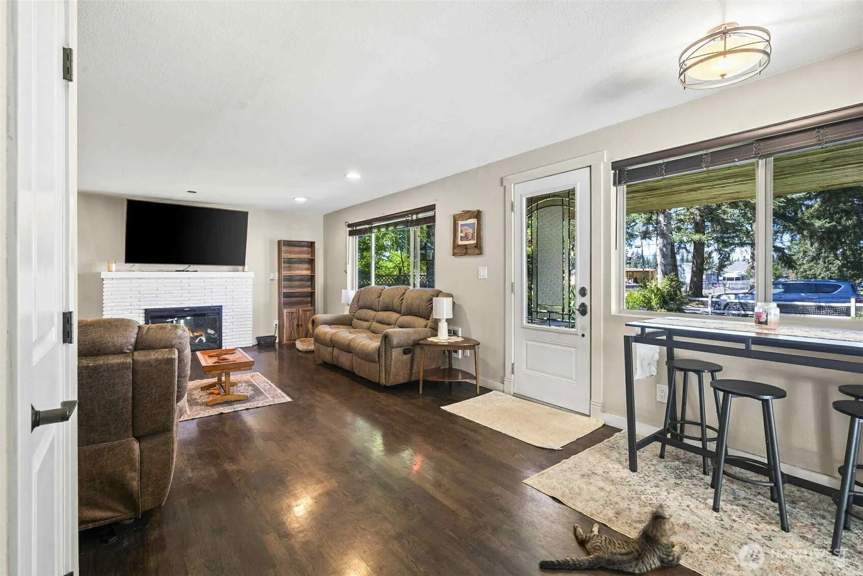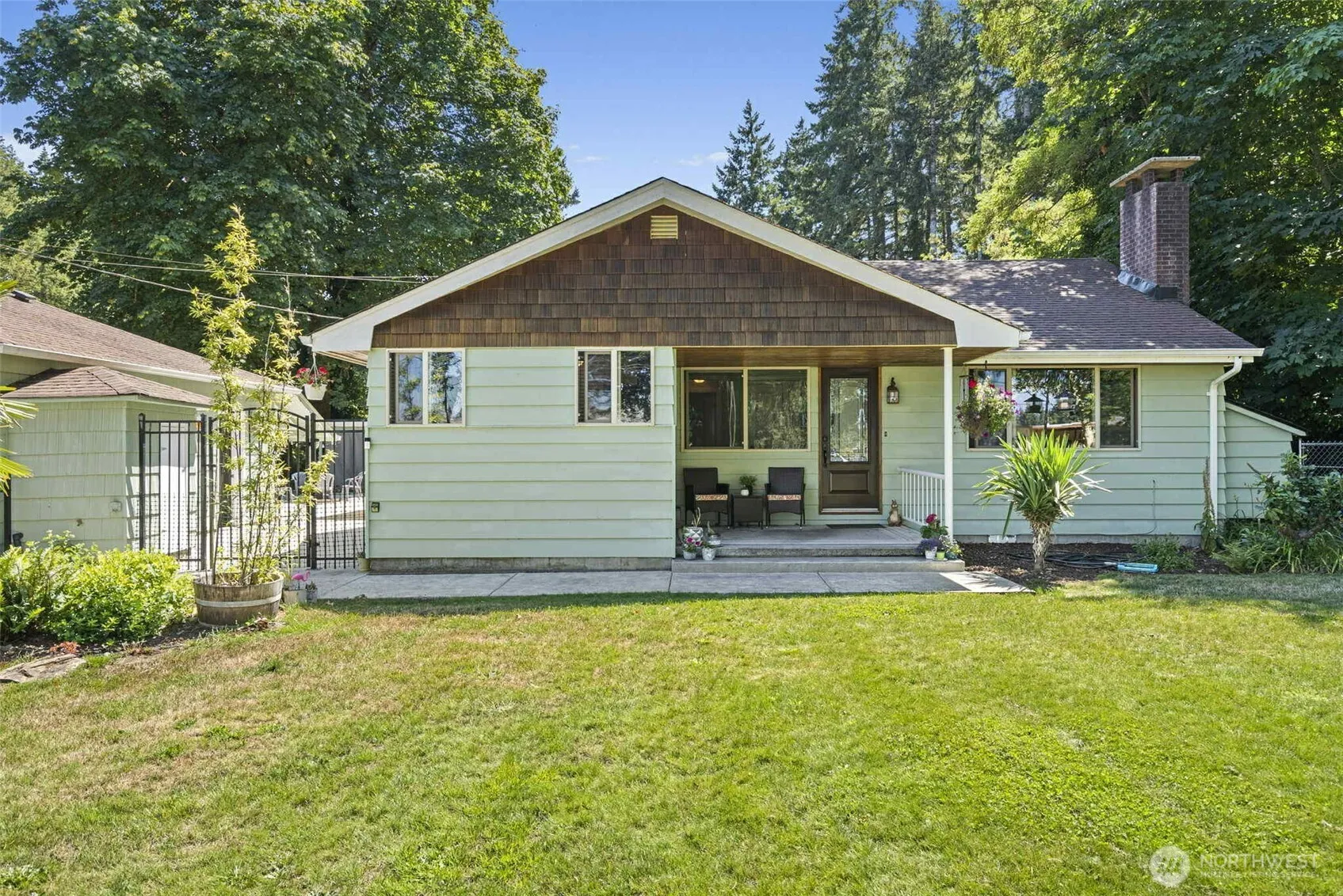 Charming 3-Bed Rambler with bonus ADU! Welcome to this beautifully updated 3-bedroom, 3/4 bath ranch-style home offering comfort, style, and versatility. The bright, open layout makes single-level living effortless, while the spacious backyard is perfect for entertaining. Bonus ADU with full kitchen and 3/4 bath – ideal for guests, rental income, or a private home office. Expansive double lot, fully fenced for privacy. Over 1,500 sq. ft. of stamped concrete patio with hot tub and fire pit – your outdoor oasis awaits! Peek-a-boo lake views add the perfect finishing touch. A rare find that combines charm, functionality, and built-in value!