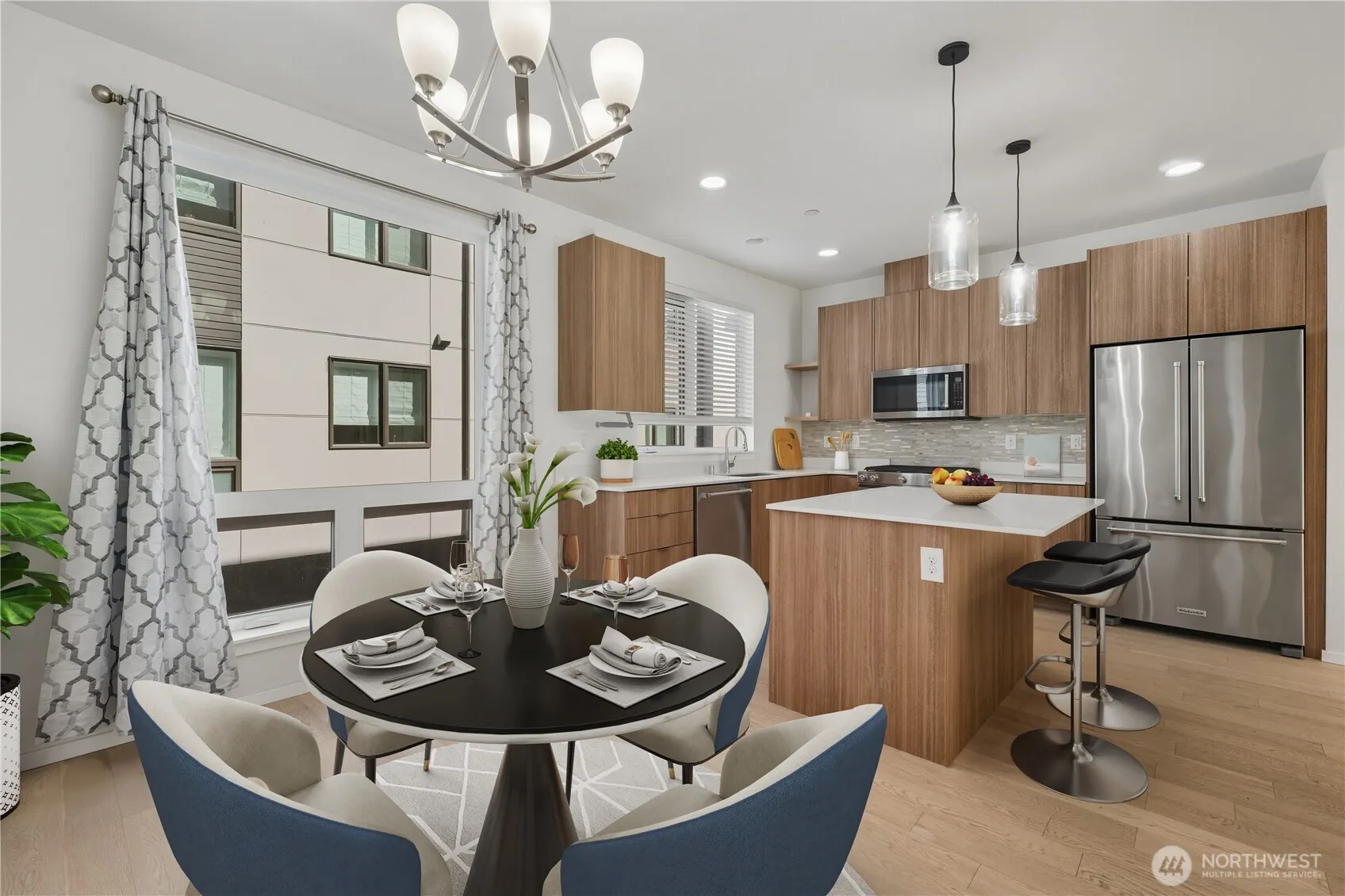 Welcome to Kenmore’s Vista Lago Townhomes, centrally located near several parks, the Burke Gilman Trail, shops & restaurants, plus an easy commute to Downtown Bothell & major job centers. No HOA! This excellent floorplan includes 4 bedrooms, including a primary suite with ensuite bath & walk-in closet. Spacious main floor with living room, dining room & light-filled designer kitchen with quartz counters and stainless-steel KitchenAid appliances. All appliances stay, including full-size washer & dryer. Mini splits throughout for heat & AC. Full guest bathroom. Gorgeous rooftop deck with peek-a-boo Lake views & gazebo for enjoyment in every season, plus retractable privacy screens. Tankless on-demand hot water. Two-car attached garage.
