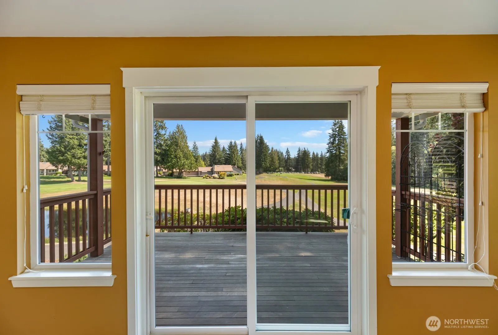 Your next chapter begins! This rare, one-story, end-unit condo has zero stairs, two bedrooms & a large den/bonus room. You’ll enjoy breathtaking golf course & pond views. Features include hardwood floors, vaulted ceilings, & a bright kitchen, creating an inviting space. The primary ensuite offers a spacious walk-in closet, & a large guest bedroom & full bath offer comfort for guests. Sliding glass doors open to a large deck—perfect for entertaining or simply soaking in the scenery. Enjoy a 2-car garage, utility room, & a peaceful location with golf cart access. Resort-style amenities include a 27-hole golf course, The Bistro restaurant, & a 50-acre spring-fed lake. Anderson Lake provides fishing & swim docks, as well as a Gazebo with BBQs.