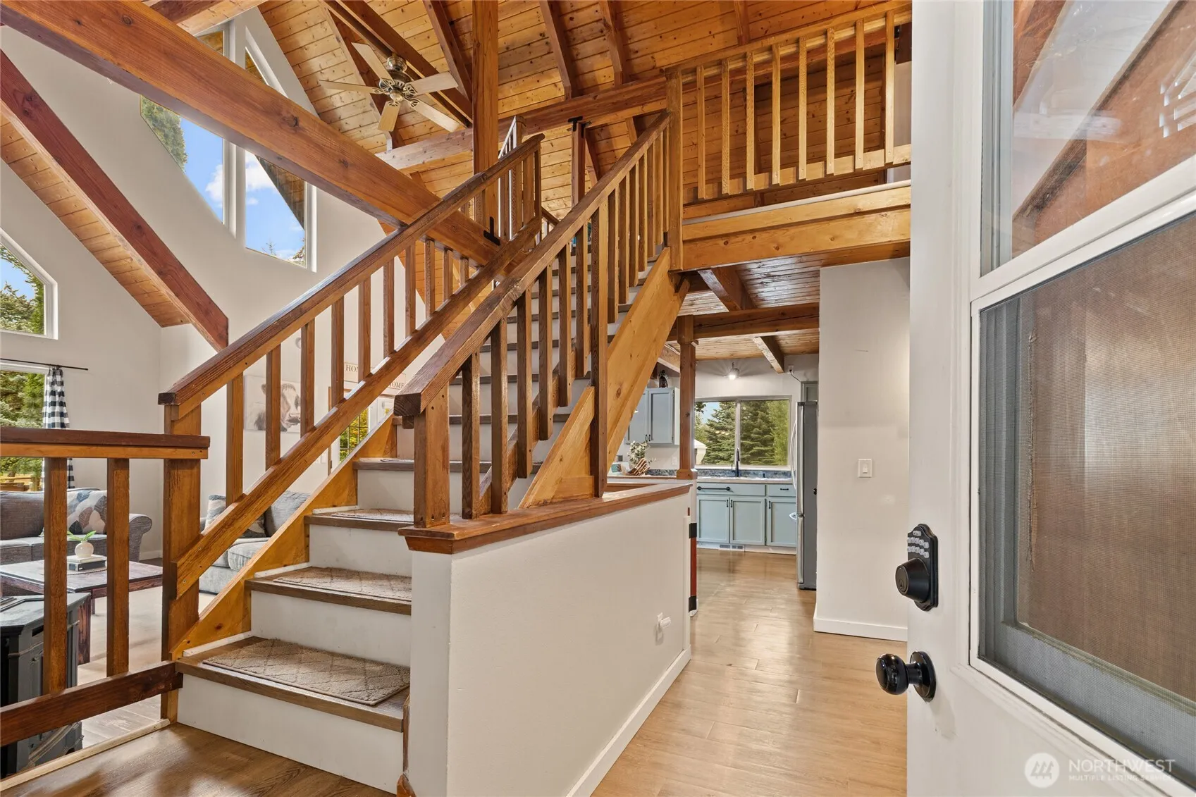 This private, cozy 1,620 sq ft cabin-inspired home offers a tranquil escape on a sprawling 3.38-acre lot. Discover the Great Room with vaulted ceilings & natural wood beams and tongue and groove ceiling, providing a warm, rustic elegance. The home features 3 bedrooms, including 2 comfortable guest rooms. The upper-level primary suite is a true sanctuary, featuring a walk-in closet and an ensuite w/ dual vanity and large tub+shower. The property’s privacy is enhanced by a spacious deck for entertaining & large private pond & lush open pasture. Outside, a large shop w/ a dedicated workshop provides utility/storage + multiple sheds/outbuildings & fruit trees. The partially fenced acreage, complete with a dog run, awaits your outdoor lifestyle.