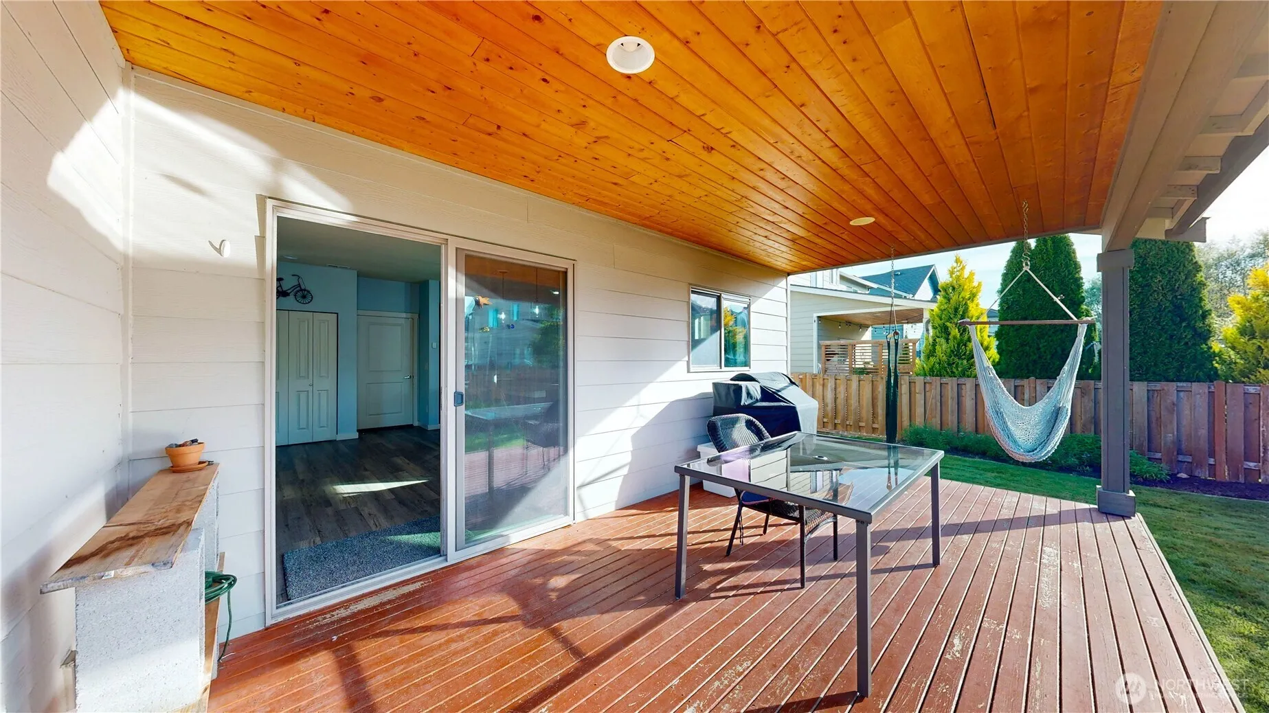 Life in Perkins Prairie, Buckley. This home is designed for space, comfort, and connection. The open-concept layout includes a gourmet kitchen with center island, quartz counters, ss appliances, & pantry, opening to the dining area & great room with cozy fireplace. Oversized bedrooms provide room for everyone. Double-door entry, LVP flooring through most of the home, and a bonus room with French doors add style and function. Upstairs, retreat to your private primary suite with sitting area, 5-piece bath, & walk-in closet. Enjoy a quiet setting across from wetlands, nearby Foothills Trail, and a covered deck. The fenced yard features raised garden beds, a 3-car garage with pass-through bay, storage, tasteful landscaping, & A/C. Welcome Home!