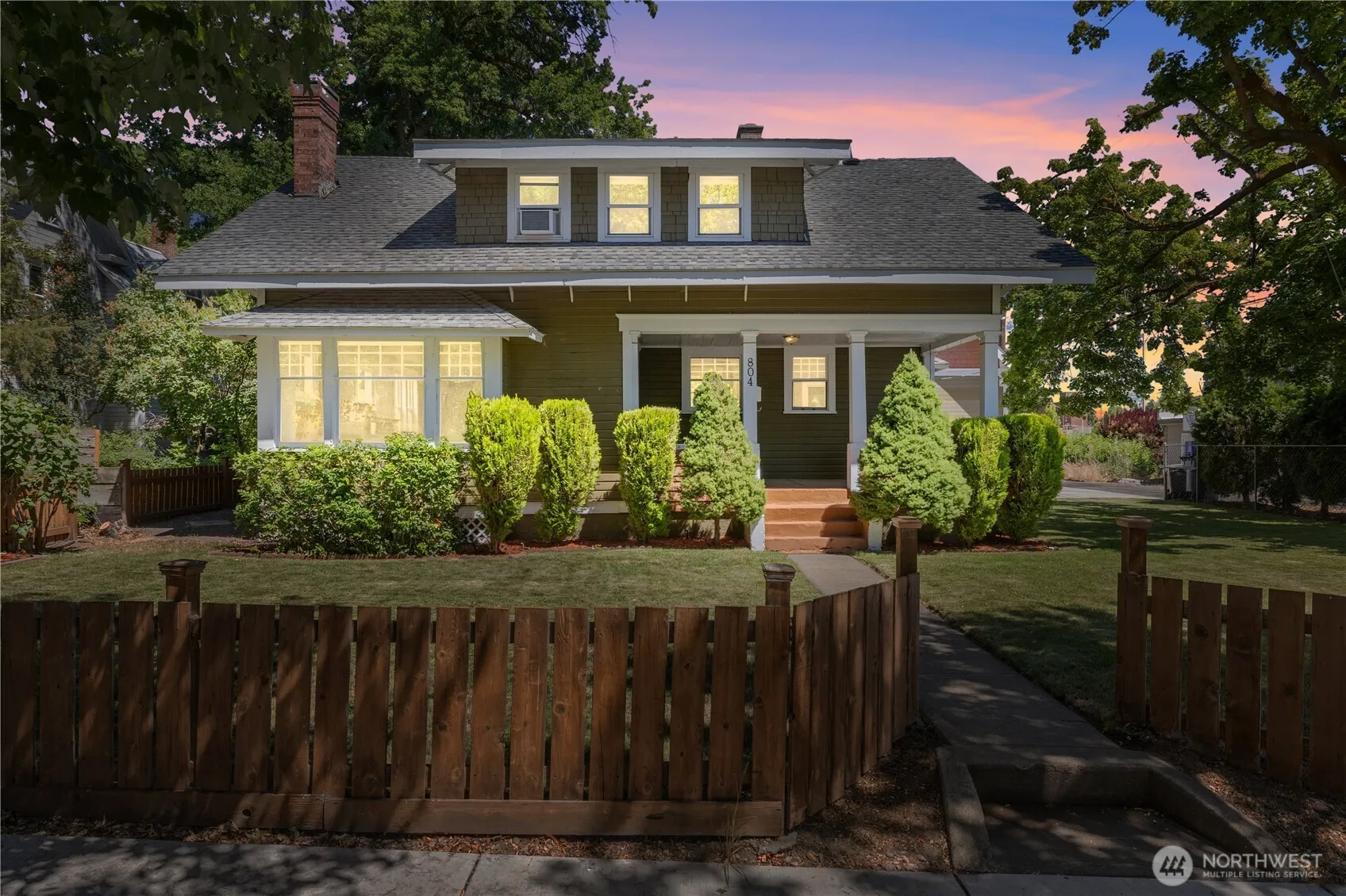 Charming University District home with 2,044 sq ft in the main house plus a detached garage with a fully finished, insulated, and heated space below and an ADU/multi-purpose studio above—perfect for guests or extra income. Freshly painted trim, hardwood floors, and a cozy gas fireplace add to the inviting feel. Two full bathrooms, one on each level. Adorable front porch for summer nights. Tons of storage in the basement, attic, and two sheds. Well-maintained lawn and landscaping with auto sprinkler system. Fully fenced yard, and plenty of garage room for cars and hobbies. Solidly built, full of charm and an unbeatable location!