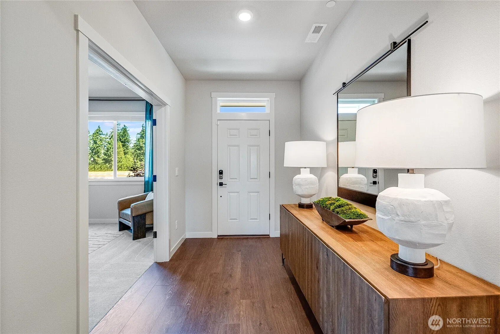 Entertainer’s dream home kitchen features a huge quartz island with shaker cabinets, convection oven, induction cooktop, built in microwave and SS refrigerator. Expansive LVP floors extend through the entry, dining, kitchen & Great Room areas. There is a den and a guest bedroom with a full bath on the main level.Primary includes sitting room, tiled shower, tiled soak tub, LVT, and quartz counters. Enjoy the sunny south facing backyard home with a covered back patio overlooking fully landscaped yard on a southern view homesite.Home includes, Washer and Dryer, Refrigerator, and blinds.Just 25 mins to PDX.Model home photos, finishes may vary. Incentives available when financing with preferred lender! Homesite #22, est completion February2026