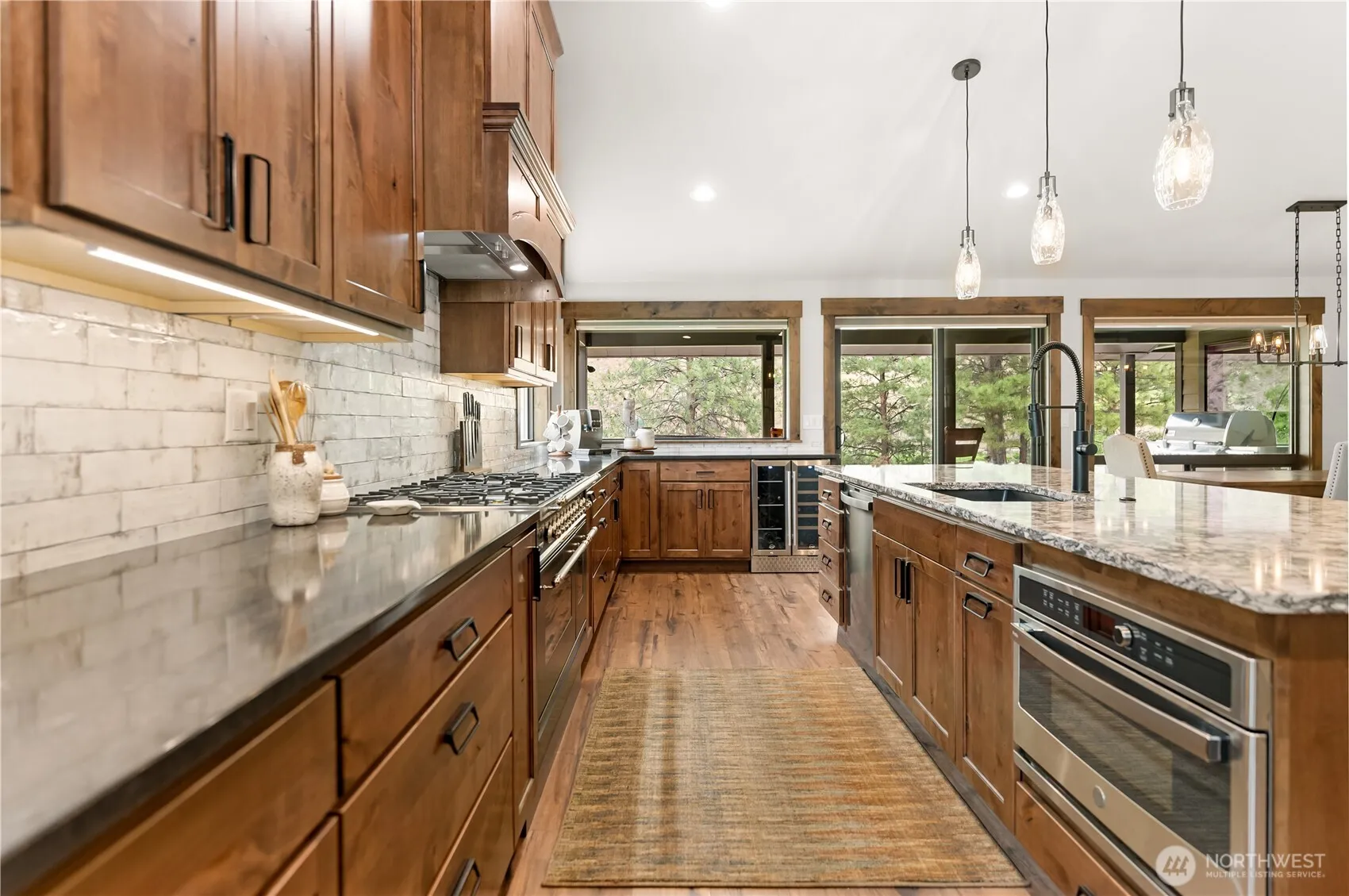 Riverfront Estate on 10.50 Acres: Delight in over 1,200 feet of waterfront featuring impressive river vistas from inside the home. The main residence and guest cabin have been elegantly updated with premium finishes; it includes 3 BD, 2 BA, and a gourmet kitchen showcasing a beautiful Italian gas range. Both the residence and guest cabin are fully furnished, making it move-in ready. The appealing guest cabin offers 2 BD, 1 BA, along with a spacious sunroom that can function as a bunk room, studio, or recreational space. Enjoy outdoor living year-round with multiple patios and decks, plus a sizable heated and insulated workshop/garage. The second parcel has a well & septic system installed. Turn it into your dream home or serene retreat!