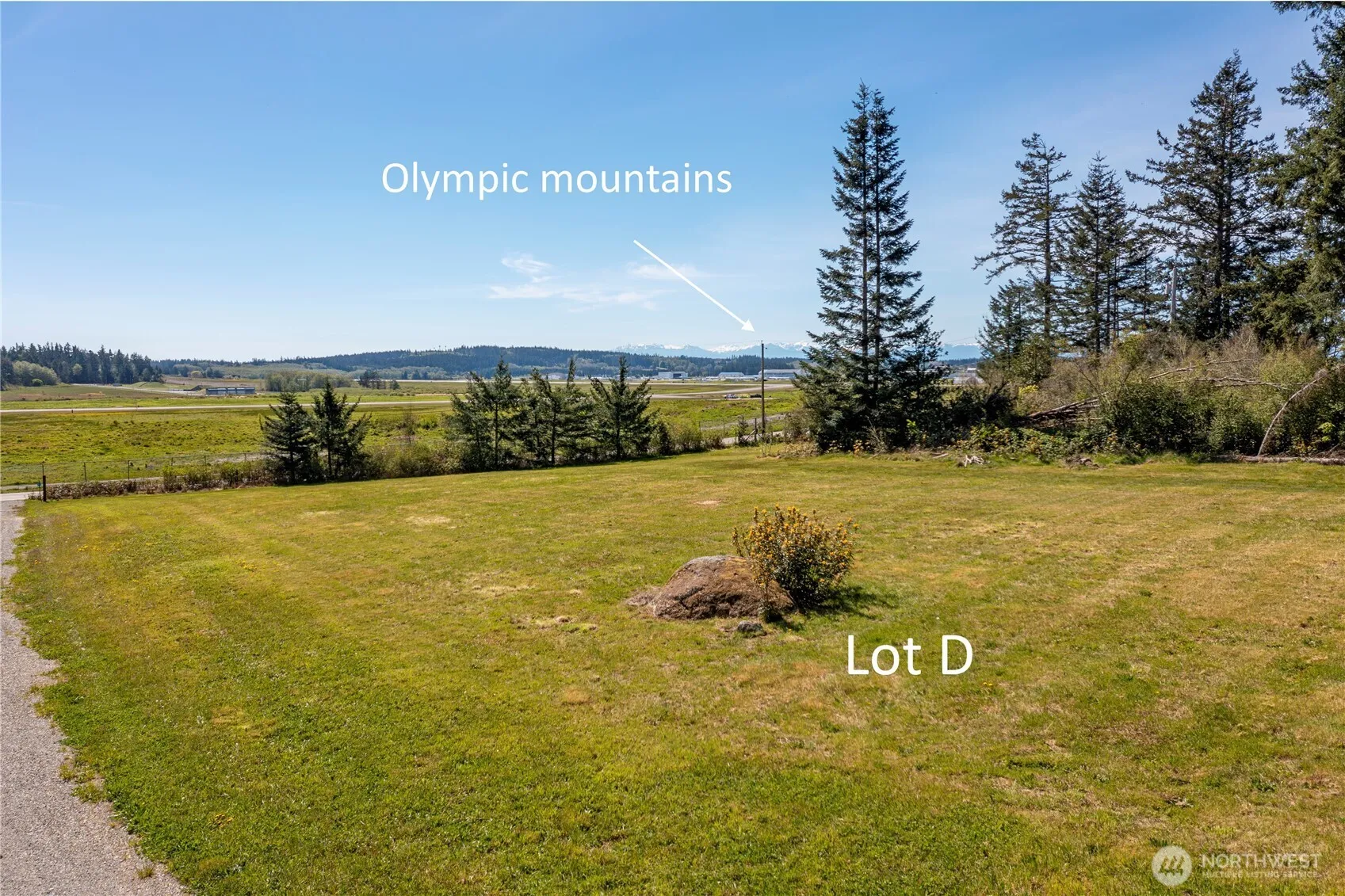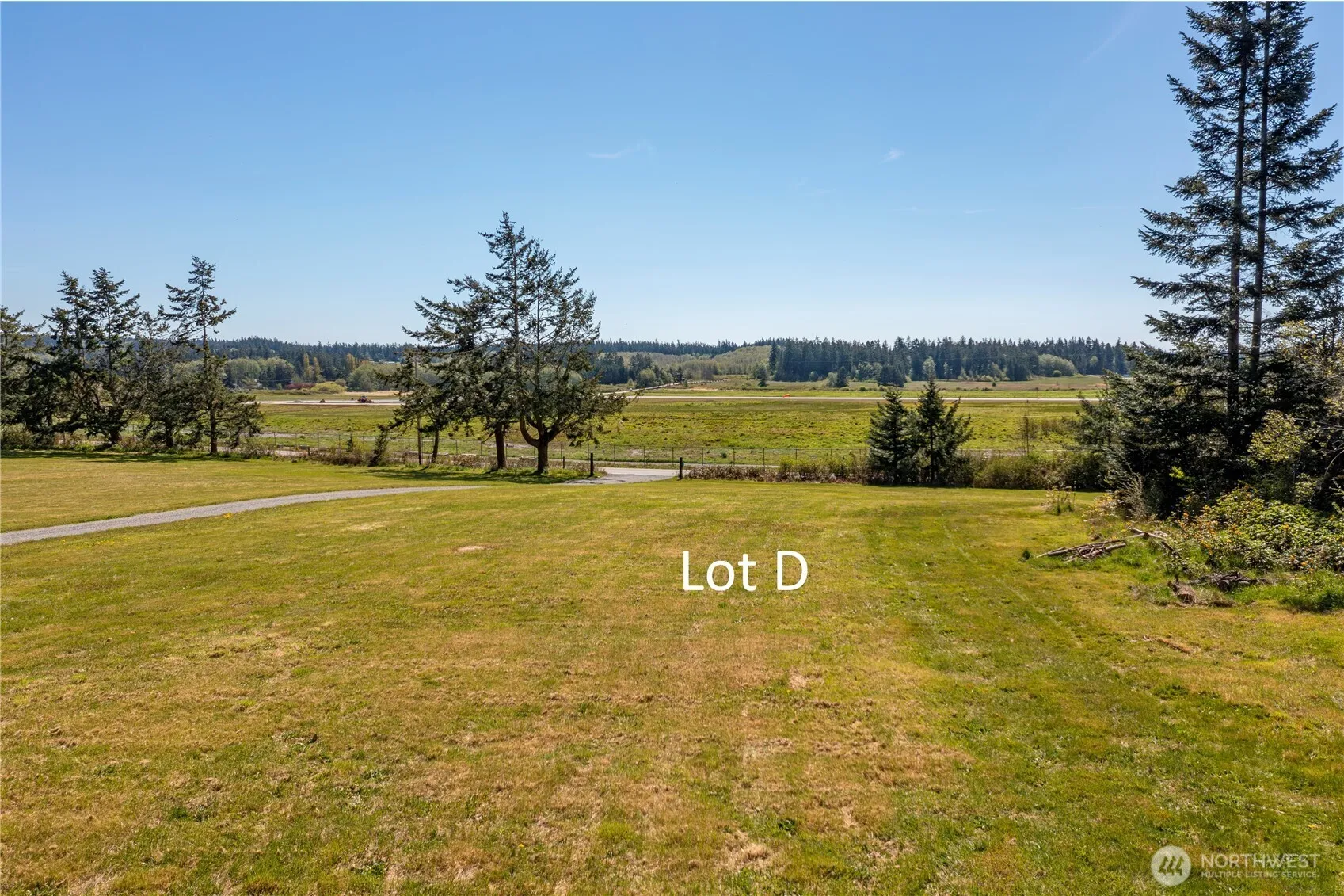 Lot D- Beautifully cleared 2.5 acre lot, ready to build w/ potential views of the Olympic Mountains! This level sunny lot has an available power hook up and all corners are surveyed. It is in an ideal location, near to Oak Harbor and all its amenities as well as close to NAS Whidbey. Enjoy a short drive to Deception Pass for off island activities. It is a cleared lot w/ a few full grown evergreens adding privacy. The site registration (perk test) is done and approved for conventional septic. The well site is approved (needs well), excellent soil w/ plenty of space for gardening. Shared driveway leads to only two other lots. Buyer to verify all information. Call friendly listing agent with questions.