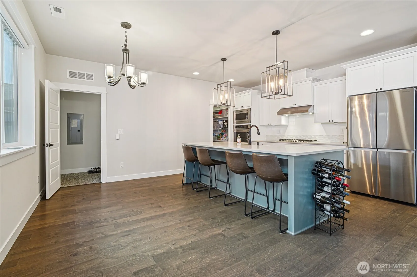 Live the dream in the Estates at Summer Lane! Master suite on the main for ultimate convenience, paired with a light-filled, open layout designed for entertaining. The gourmet kitchen shines with a gas stove and two ovens—perfect for chefs and party hosts alike. Upstairs offers a versatile bonus room or extra bedrooms, plus a private office for work or hobbies. A detached garage with breezeway adds charm and function. Step outside to enjoy community parks, playgrounds, and trails—all just minutes from The Village at Chambers Bay!