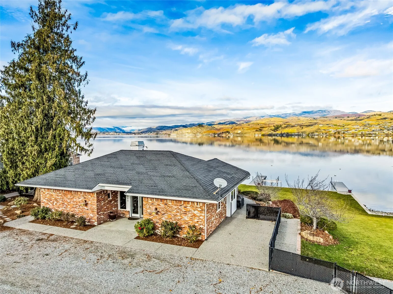 Rare opportunity to own two contiguous Lake Chelan waterfront parcels along the coveted Golden Mile, featuring two private docks, a new concrete bulkhead, and 86 feet of sandy beach. This low-maintenance brick home offers 2 bedrooms, 2 bathrooms, and an open-concept floor plan with a gourmet kitchen, perfect for entertaining or everyday living. Expansive outdoor spaces include a large patio, manicured lawns, and a gentle slope to the water, creating a serene lakeside retreat. With room to expand, the property provides both comfort and potential for customization. Enjoy the perfect balance of privacy, convenience, and luxury, just steps from the water. A rare lakefront offering with exceptional lifestyle and investment potential in one