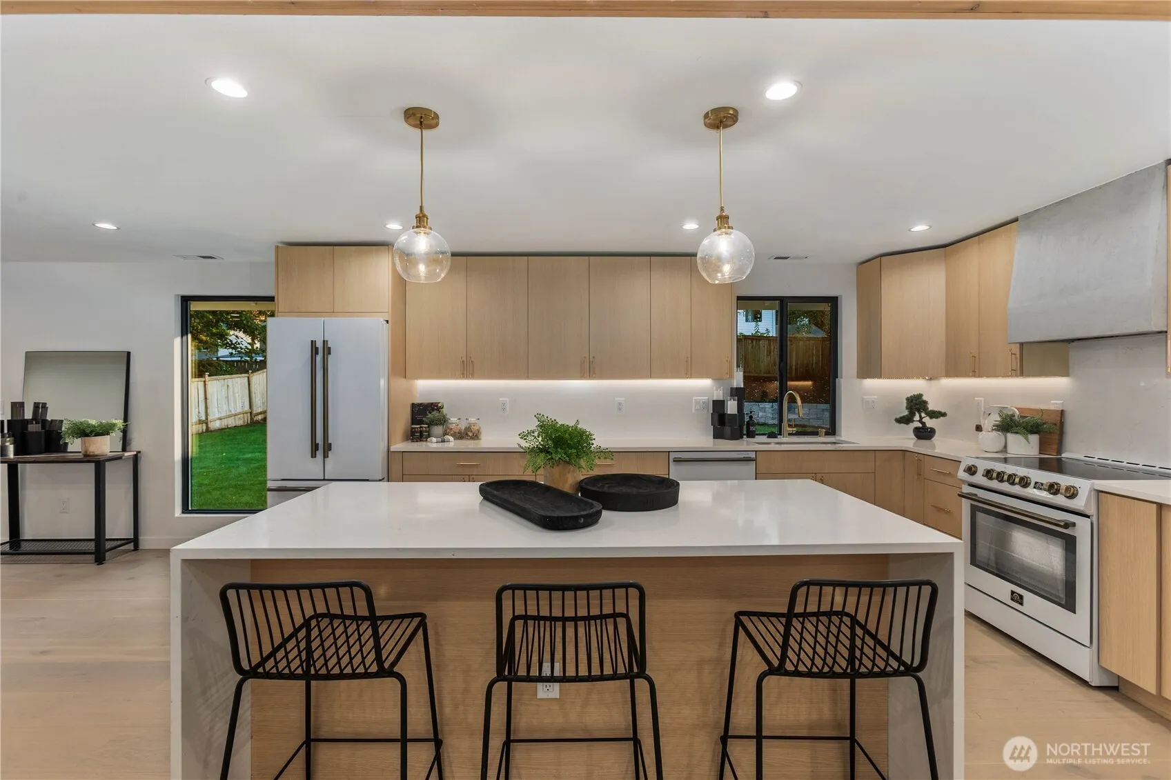Come see this Stunning one of a kind Rambler in Newport Hills!Fully Remodeled down to the studs with all the permits, Open concept floor plan with engineered flooring throughout the home, beautiful electric fireplace in the living room area, designer kitchen w/ SS appliances, quartz counters & large island, tile throughout the bathrooms, Primary bedroom with its own ¾ bath. Large fully fenced private backyard with all new landscaping.Mins to I90/405, Newcastle Commons, Coal Creek Shopping & Factoria for shopping & dining! Eligible to apply to transfer to Bellevue School District (buyers to verify).