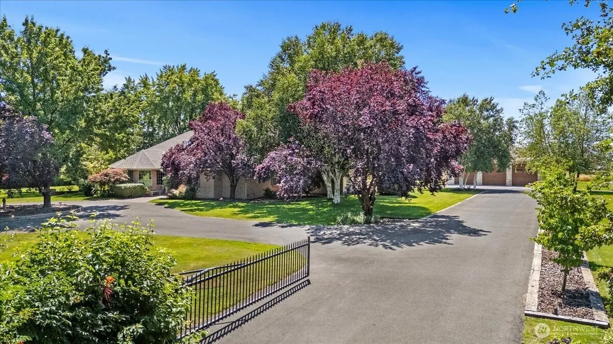 Here is the perfect homestead on 2.36 acres of park-like trees on level land in a penetratingly quiet environment! It’s a sought-after sanctuary on one-level, well-conceived and uniquely constructed. It’s a magical place with a securely gated entry leading to a circular driveway ideal for entertaining guests. There’s a tree-lined route leading to a two-car attached garage and detached 3-bay shop with soaring ceilings and 10-foot doors, plus the power you need for any project. A fully updated kitchen with granite counters and stainless appliances await. Primary suite occupies the SE corner of the home while other bedrooms are on the NW corner. Truly an astonishing estate. Call your realtor for your personal tour.
