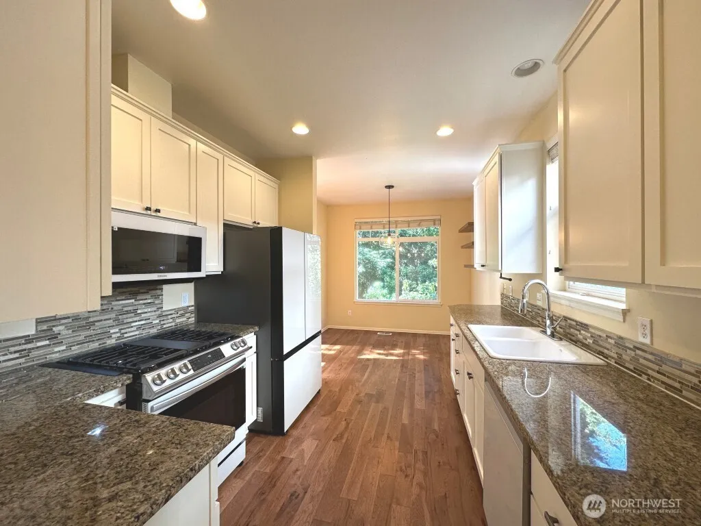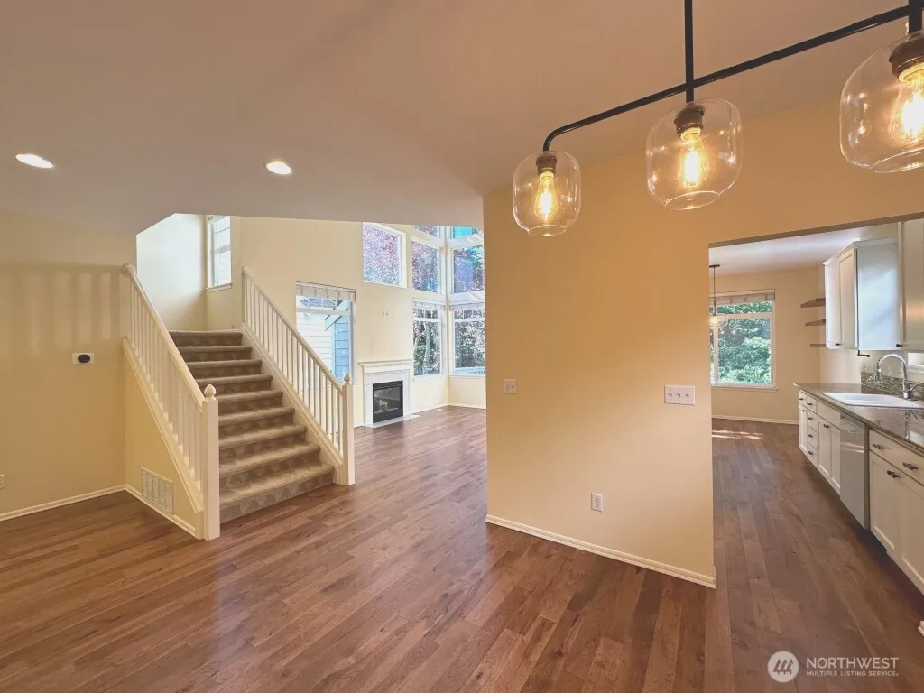 Available 1/16/26! Beautifully maintained home in Kirkland’s desirable Enclave neighborhood! AC, EV Charger, Soaring ceilings & oversized windows stream natural sunlight throughout this circular floor plan. Main level features kitchen w/ new ss appliances, eating space, dining room, living room, 1/2 bath & outside deck backing to natural landscape. Perfect for entertaining. Upstairs has 2 bedrooms, 1 full bath and primary 5 piece en-suite. Lower level has large family room, an additional bedroom, 3/4 bath & covered patio. 2 car garage. Quiet setting with easy access to freeways & acclaimed LW schools. Pets case by case with $50 pet rent per pet. A perfect place to call home!
