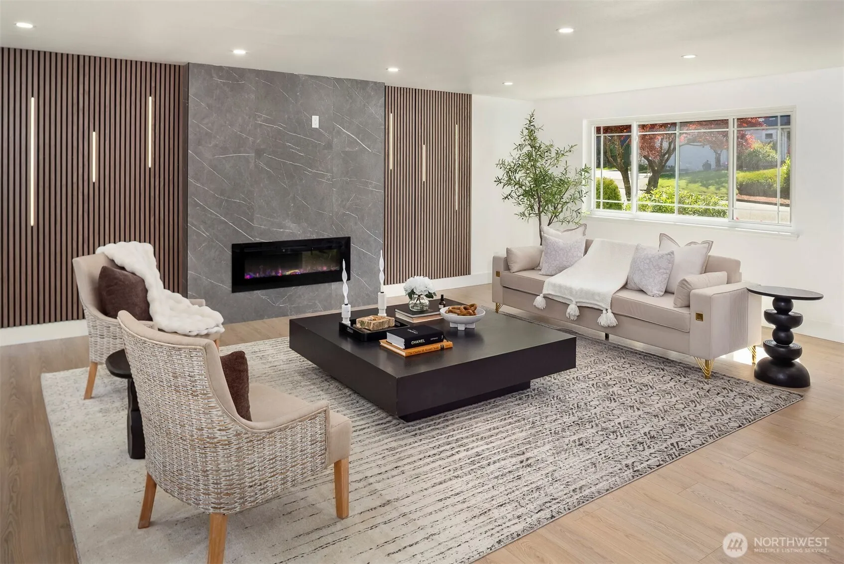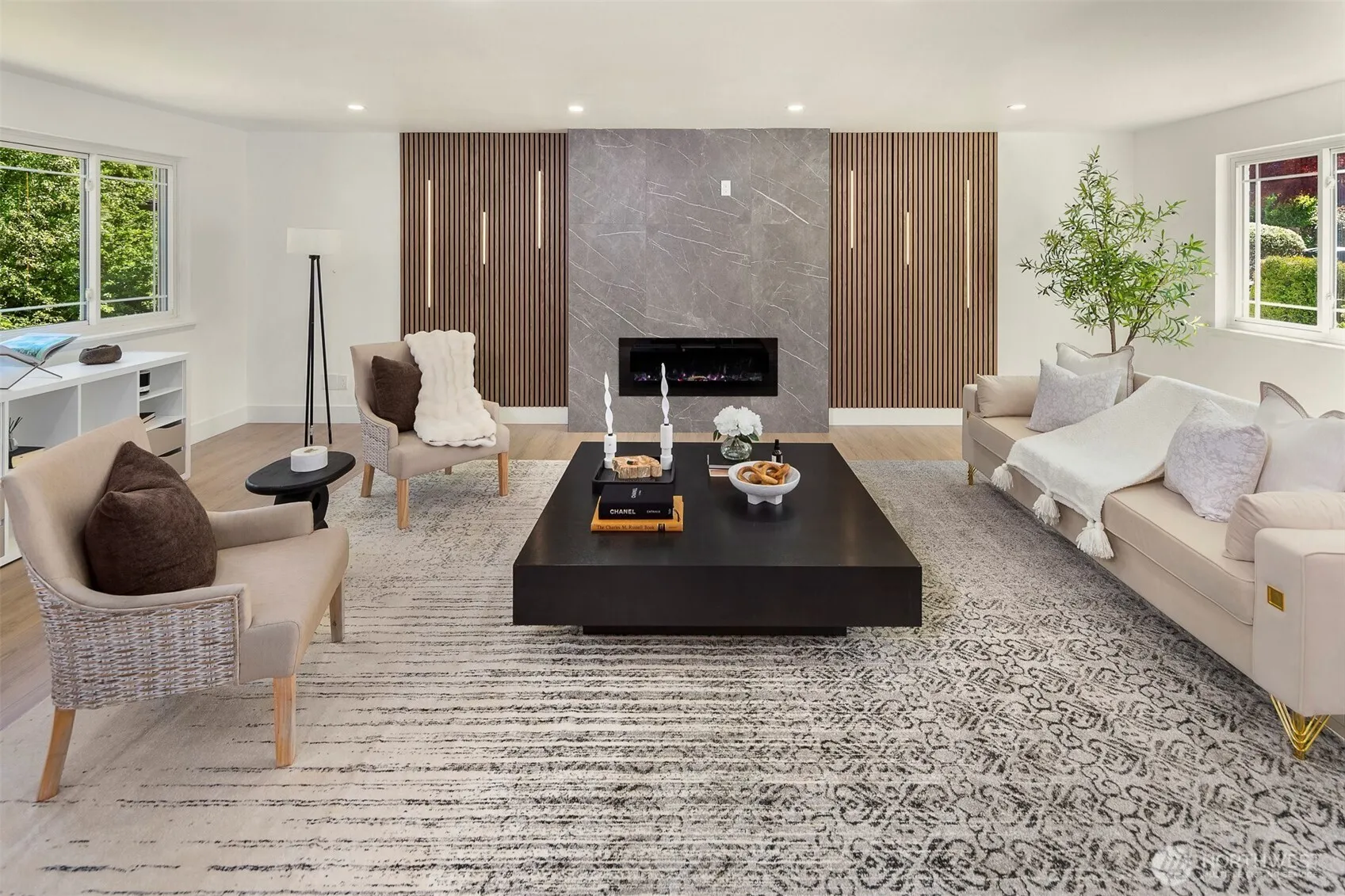 Modern sophistication and flexible living await in Bellevue’s desirable Newport Hills. This beautifully remodeled home showcases contemporary design and high-end finishes throughout. The open-concept main level features a sleek kitchen with Bosch appliances, quartz countertops and marble backsplashes with custom mother of pearl inlay. The generous primary suite offers a spa-inspired 5-piece bath. A private lower-level suite includes its own kitchen, bedroom, bath, and separate entrance—perfect for guests, extended stays, or income potential. Enjoy a spacious deck, fully fenced yard, and a central location minutes from I-405, Coal Creek Parkway, schools, shopping and parks!