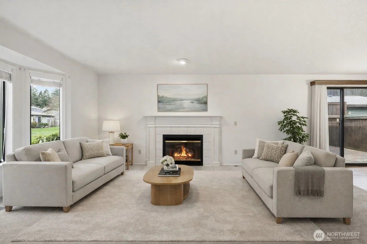 Hard-to-find rambler-style condo located in the heart of University Place! This well-cared-for home offers effortless single-level living with an inviting open floor plan, warm fireplace & a functional kitchen w/ generous counter space & storage. The primary suite is filled with natural light & features a walk-in closet & private ensuite bath. A roomy second bedroom, perfect for guests or home office, is conveniently located near a full hall bath. Additional features include a dedicated laundry room w/ washer & dryer, two-car garage, and a newer heat pump for year-round comfort. Set within a beautifully landscaped, park-like community, this home combines the feel of a single-family residence with the ease of low-maintenance condo living.