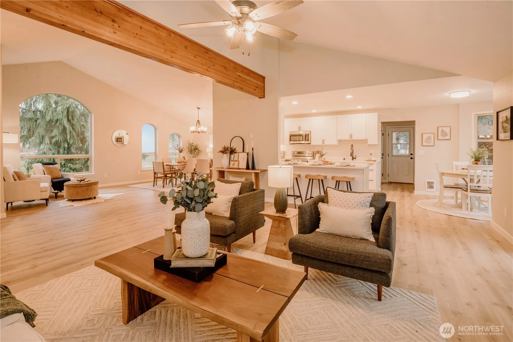 Set on a beautiful 1.74-acre lot, this stunning REMODELED RAMBLER offers the perfect blend of space, comfort, and style. The one-level HOME features 3 bedrooms and 2.5 baths with BRAND NEW floors, paint, doors and trim throughout. Enjoy the BRIGHT eat-in kitchen with new cabinets and Quartz countertops, SS appliances, a cozy casual dining nook, plus a gorgeous formal dining room filled with NATURAL LIGHT from picturesque windows. The OPEN-concept living room is warm and inviting, highlighted by a brick-surround pellet stove. Enjoy expansive OUTDOOR LIVING with a large, usable yard ideal for gardening, hobby farming, or RELAXING. Perfect for outdoor enthusiasts with privacy, SPACE, and peaceful country living, only a couple miles from town