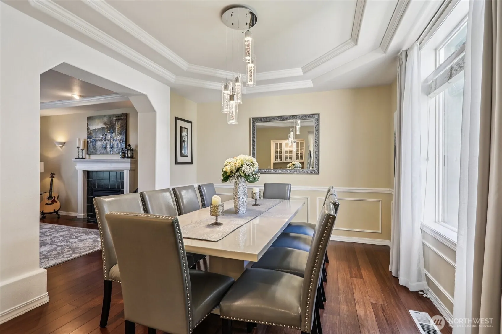 Step into this beautiful Colonial in desirable Bellacarino Woods! This immaculately maintained 4-bed, 2.5-bath home boasts 9-ft ceilings, a chef’s kitchen with granite countertops, central AC, and spacious 3-car garage with lots of storage. Enjoy a large bonus room (currently 5th bed), main floor office, formal dining room, and cozy fireplaces. The outdoor oasis offers a patio, pergola, professionally landscaped grounds with sprinklers, and a private, fully fenced yard backing a 6-acre greenbelt. Located in a serene cul-de-sac, immune to street noise, close to schools, parks, BPA trail, King County Aquatic Center, & freeways for easy commuting. High-quality tile roof, Hardi Plank siding. Ready to move in—a must-see!