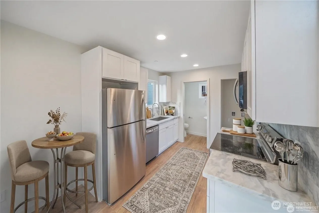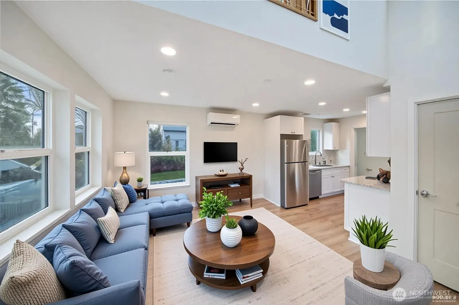 New Construction DADU by Lake Burien by Yen Design. Perfect 2-bedroom, 1.5 bath 793 sqft w/ custom kitchen & private driveway to your your deeded single family home! Two story home with open vaulted ceiling & beautiful tile baths and stone countertops. Stainless appliances included. Custom wood flooring & staircase Primary Bedroom w/ private balcony. Heating with full A/C mini splits on lower level & master bedroom. Nice covered patio with pavers off kitchen & all new landscaping. Buyer will have 1-year warranty. Buyer options upgrade prior to closing include: paver driveway, fencing, landscaping, & other items. All utilities are separate, sub-meter water billing. DADU & Home can be purchased together or separately. Close to Lake & Airport