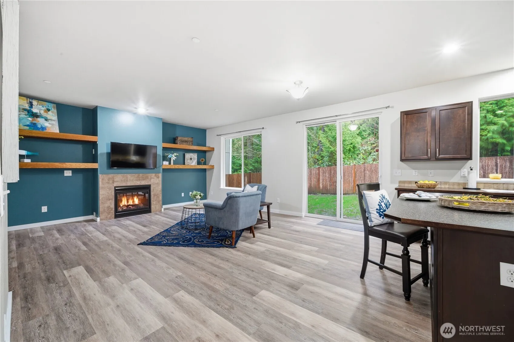 Welcome to this refreshed, inviting 2013 like-new home-with 4 bedrooms-offering modern comfort in a serene setting, backing to private treed land for peace & privacy. Recent upgrades include new carpet, lux vinyl wood floors, fresh interior paint, new heat pump, & new automatic garage door opener w/remotes. Vaulted ceiling in the grand room with cozy fireplace wall & spacious kitchen with island & walk-in-pantry. Located in the highly regarded CK Schools. Minutes from Naval Base Kitsap, Bangor, & Bremerton shipyard, it’s ideal for those seeking convenience & community. Upstairs, spacious primary & en-suite bath, 3 more bedrooms, hall bath, laundry room with washer & dryer. Fenced backyard. Don’t miss this sweet gem—book your showing today!