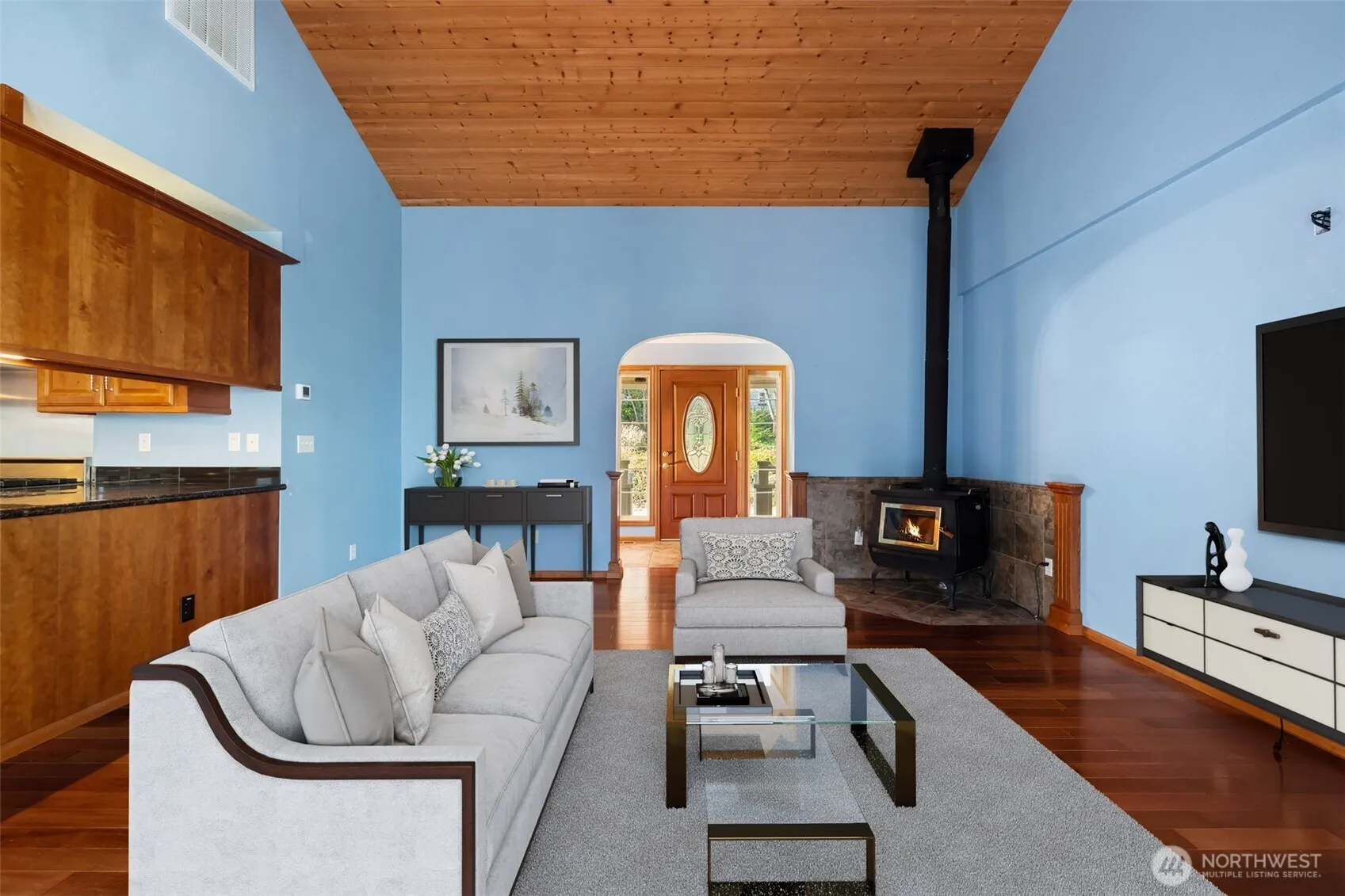 Custom-built, single-level home set on 2.16 acres. Featuring an open concept design and quality craftsmanship throughout. Beautiful flooring, tongue-and-groove cathedral ceilings, solid-core doors and wood wrapped windows. The kitchen offers granite countertops, Viking range and refrigerator, dining room that comfortably seats 10–12. Perfect for Sunday dinners. Primary bath features cork flooring, double vanity and a walk-in shower. Large, split-bedroom layout provides privacy and functionality. Additional features include a wood stove, heat pump, propane furnace and electric hot water tank. Wrap around porch, detached 2 car garage plus a 4 car garage/shop, tons of parking. Darling gazebo too.