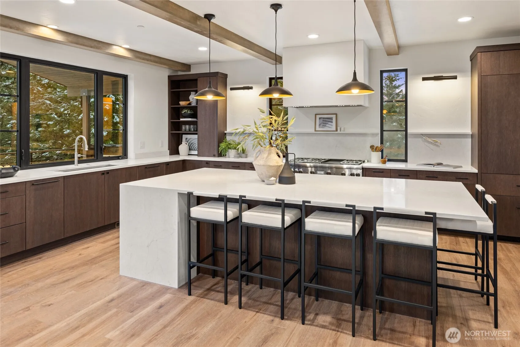 Situated on one of the best view sites in Suncadia, this stunning new modern mountain home by Benchmark Custom Homes offers panoramic views in the gated River Ridge neighborhood. This 5-bedroom + den home includes a separate lower-level living room, high-end kitchen with walk-in pantry, main-level ensuite, upstairs primary & guest bedrooms, and a lower-level bonus with more bedrooms. Radiant heated floors in the basement and main living room. Enjoy custom tile, flooring, steel staircase & more. Entertain on the elevated deck or ground-level patio with direct trail access to the river or Nelson Farm Pool.