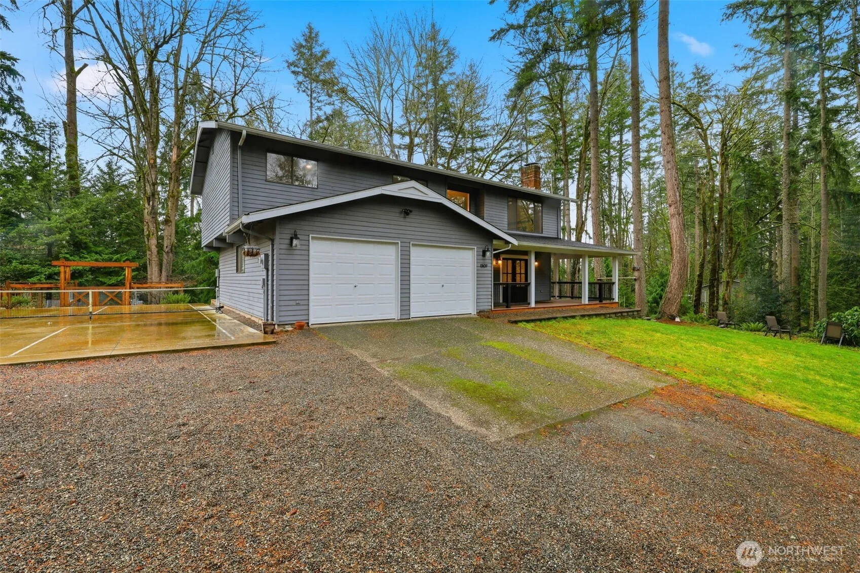 Serene and exceptionally private, this truly special residence sits on a shy acre bordering protected County Park trails and verdant greenbelt. Completely renovated and spacious 4-bedroom, 2¾-bath 2-story showcases a refined chef’s kitchen, welcoming front entry and a covered porch. An expansive entertainment deck extends the living space outdoors, overlooking Eagles Glen Pond with blue heron and duck sightings. The grounds are equally impressive, featuring a full-size pickleball court, enclosed garden, invisible fencing, generous RV parking, playhouse and a firewood shelter. Ideally located minutes from Beaver Lake Park and Plateau amenities, this is elevated living in a truly peaceful setting. Available now!