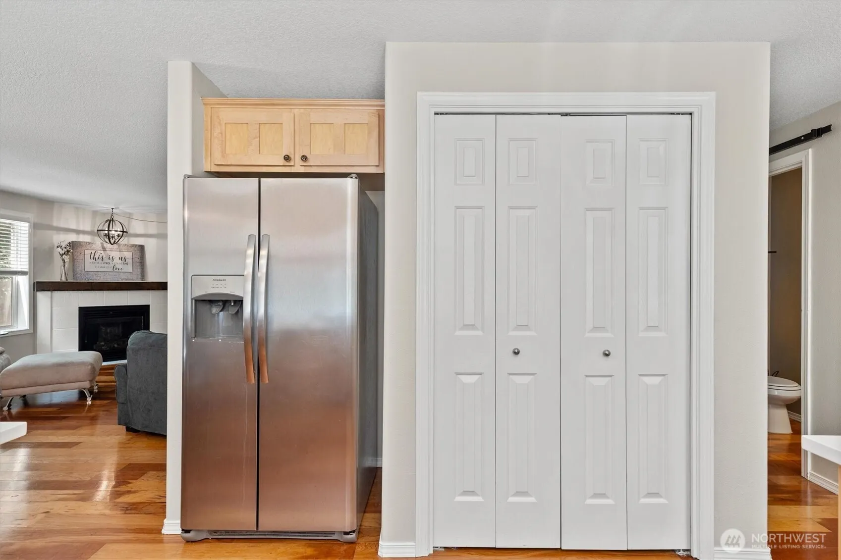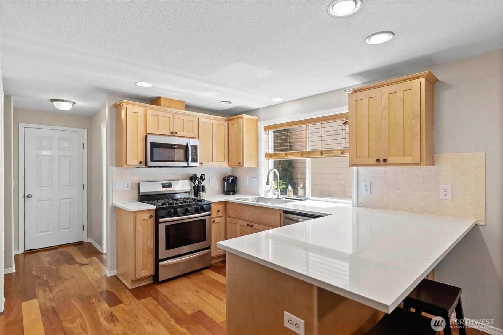 Move-in ready and full of charm! This 4-bedroom, 2.5-bath home has thoughtful updates and a private, nature-backed setting. The inviting living room features a cozy gas fireplace, while the updated kitchen offers new quartz countertops, a sleek tile backsplash, and stainless steel appliances. Enjoy seamless indoor-outdoor living with a deck off the dining area, overlooking a fully fenced backyard with a firepit, garden space, and wooded backdrop. Ideally located across the street from a park and NO HOA—this home truly has it all!