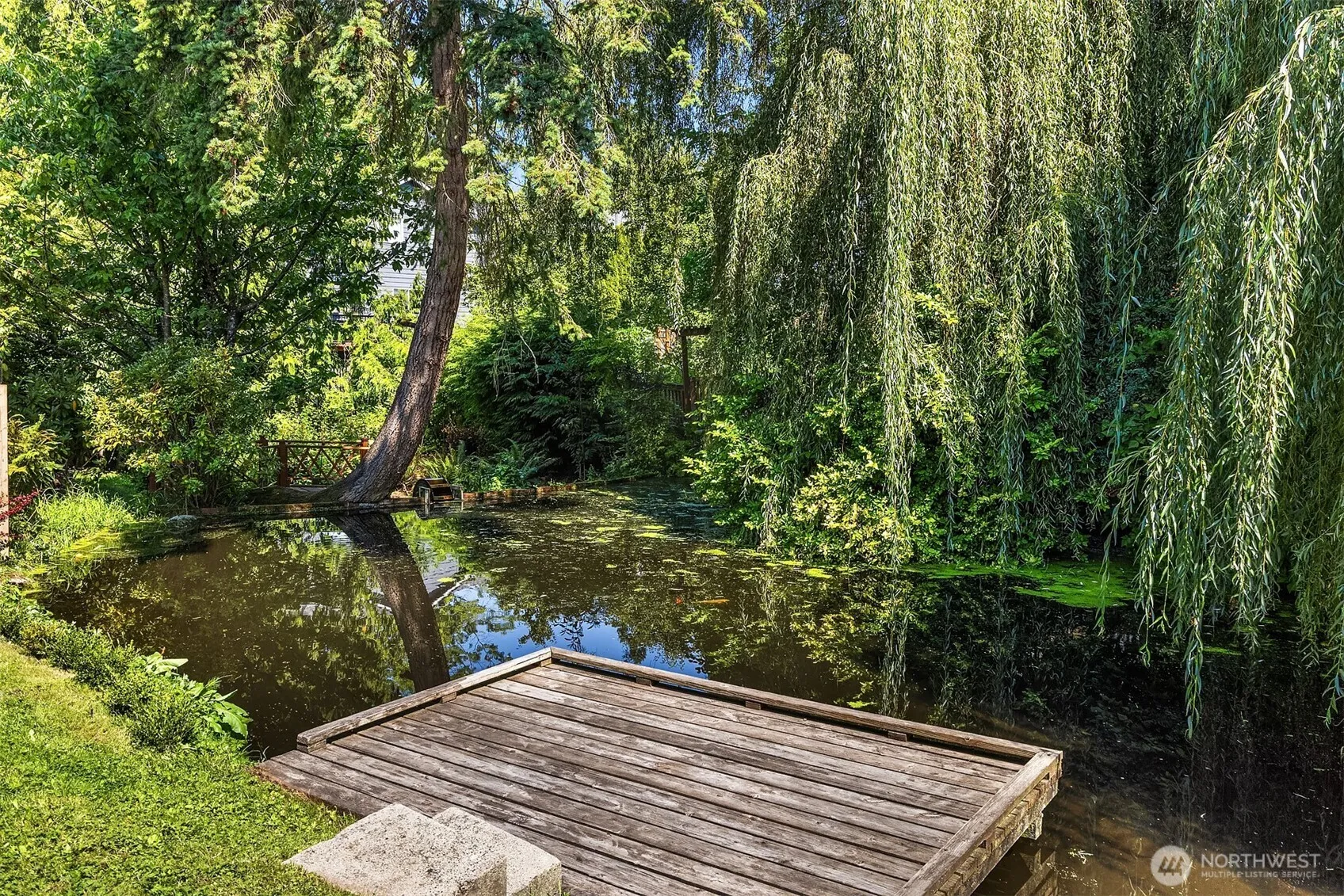 Tranquilly situated on a scenic spring fed koi pond with floating dock & waterwheel, this elegant Dutch Colonial Revival exudes old world charm embodied in a modern new luxury home! Boasting 3228sf, 4 beds & 2.5 baths on sprawling .23 acre lot in ultra convenient Kennydale. Fully updated & masterfully crafted with sophisticated designer finishes throughout ~ ebony hardwoods, crown moldings, tray ceilings, wainscoting, upscale lighting & iron rail open staircase. Stunning showcase kitchen with custom range hood & dining island. Main floor primary with lavish en suite. Wrapped in windows with abundant natural light. A year round outdoor oasis with spacious covered porches. Huge garage & ample parking. Short walk to grade school & playgrounds!