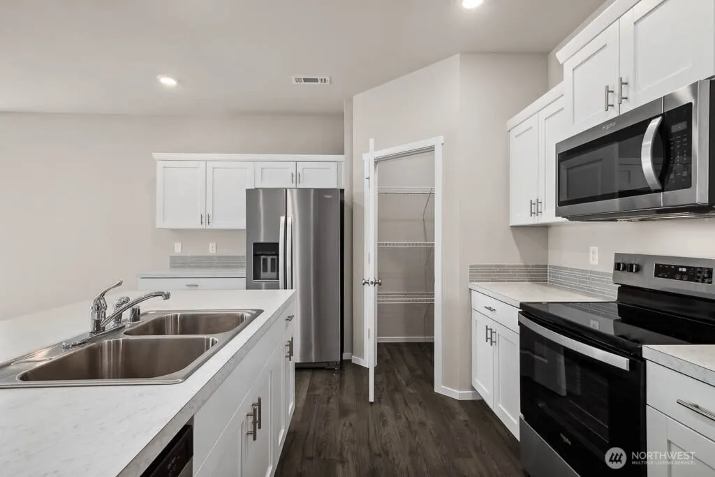 Looking for single story living? Look no further than Bakerview Phase 2 in Stanwood. This “Cali” Open Floorplan Rambler has it all. A/C, 2 car garage with 240 Volt outlet for EV charger, home automation package & a covered back porch, light color painted cabinets! Wide hallway & 9 foot ceilings welcome you. Kitchen includes timeless kitchen appointments such as stainless appliances, slab quartz counters, walk in pantry, island with room to gather at & separate dining area. Bakerview is a stunning new home community featuring amenities such as Pickleball courts, Basketball court, playgrounds, picnic structures & tree lined sidewalks. 1-2-10 year warranty. Buyers must register their broker on site at 1st visit.