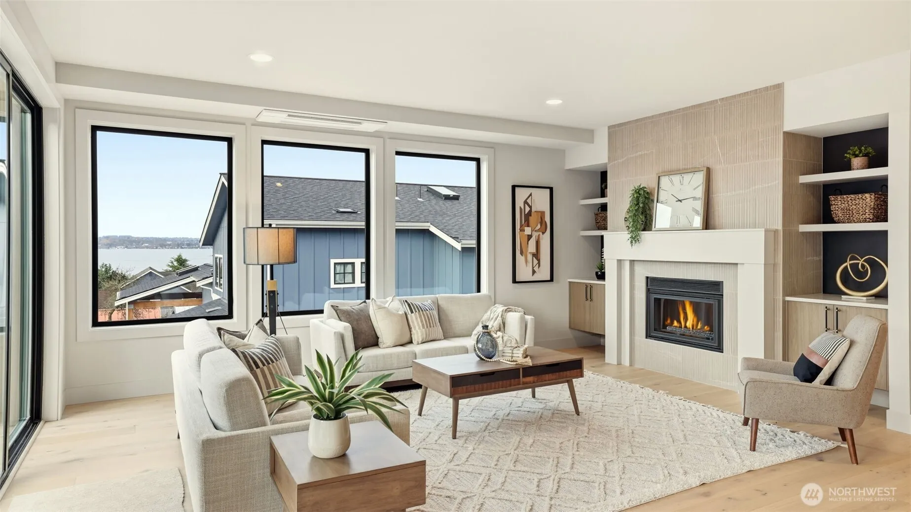 Avon Development unveils a commanding NW Contemporary in Lower Kennydale, purpose-built to celebrate sweeping, unobstructed views of Lake Washington and the Olympic Mountains. Walls of glass, soaring vaulted ceilings, and open living spaces frame the ever-changing panorama—from glowing sunrises over the water to dramatic evening silhouettes of the range. The chef’s kitchen flows seamlessly to the great room and out to an expansive rooftop deck, creating a showstopping venue for entertaining or savoring quiet mornings above the treetops. The luxe primary suite is positioned to capture the views as well, featuring a spa-inspired bath and custom walk-in closet. Additional en-suite bedrooms provide comfort and privacy for guests. Thoughtful amenities include A/C, a fenced yard, a 3-car garage, and a pre-planned elevator design for future convenience. Set near scenic trails, bike routes, and waterfront parks, this home blends modern architecture with a lifestyle defined by light, openness, and the natural beauty of Lake Washington.