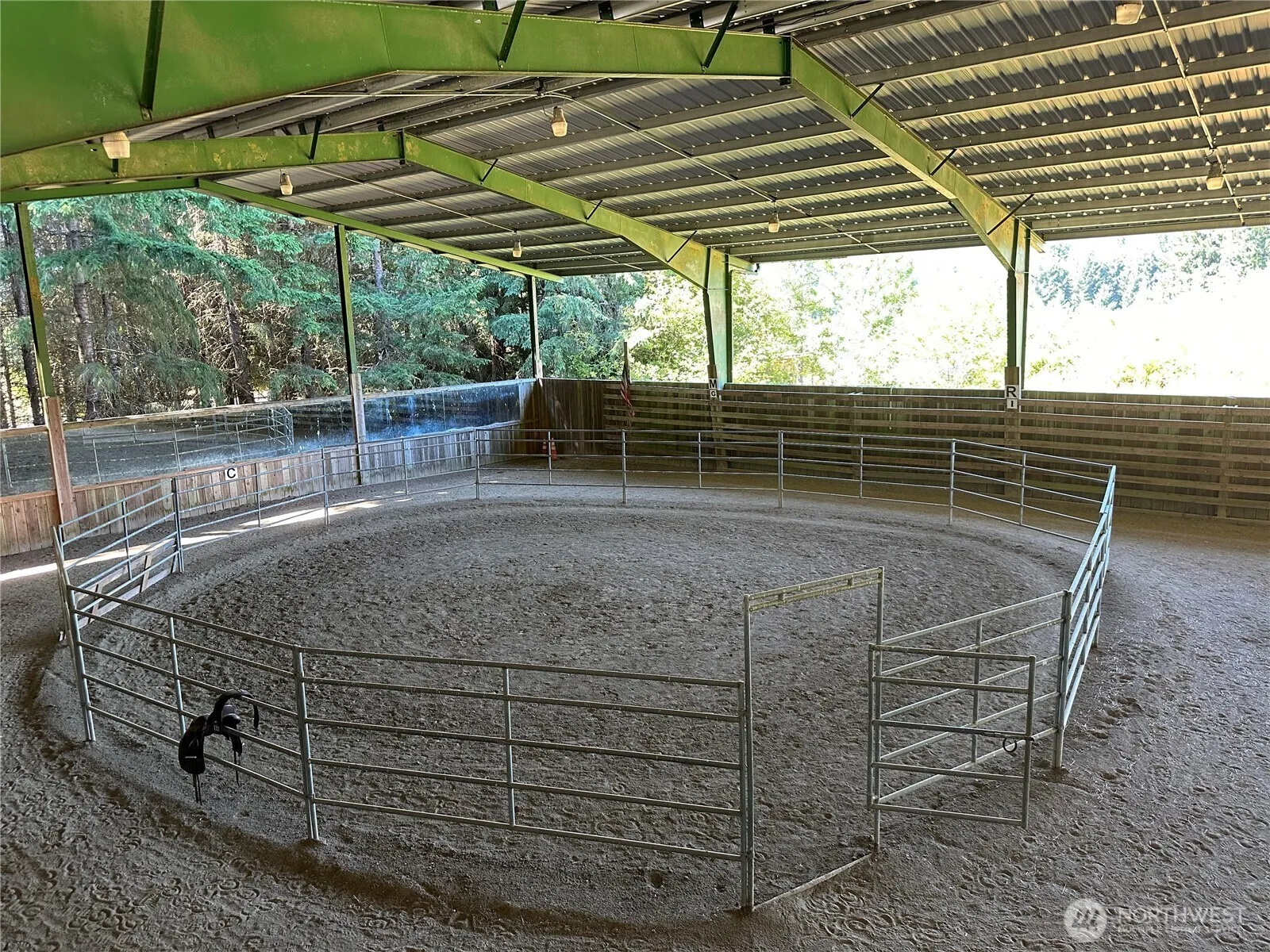 This Horse Ranch sports a 70′ x 150′ INDOOR ARENA set up for dressage and a total of 12 stalls (8 directly off the arena and 4 in the barn) on 35 acres in a private Lewis County valley. At its doorstep are miles of Port Blakely, timberland & forest trails, midway between Seattle & Portland. The barn has bulk grain & hay storage, while the adjoining shop has commercial size entry doors, a hunters dream of a walk-in cooler, a bunkhouse & bath – building total measurements 37′ x 96′. All this plus a spacious lodge style log home with its daylight basement & oversized 30’x 42′ 3-bay log carport overlooking the valley will make you want to call this home. Approximately 23 acres in Timber Please give 48 hour notice to tour