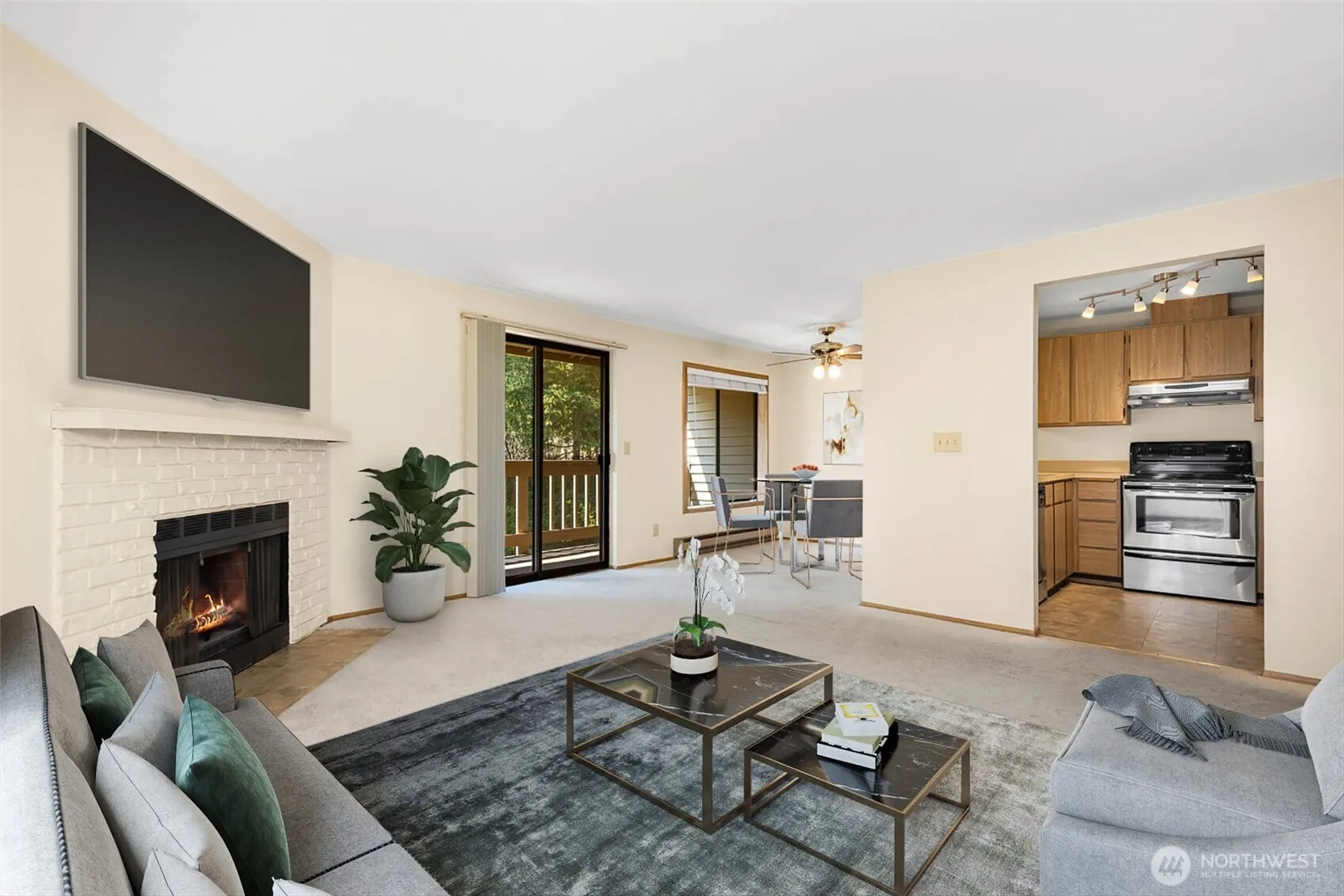 This beautiful top-floor corner unit Renton condo is move-in ready and full of character! Flooded with natural light from large windows, this spacious unit offers a well-designed layout with a warm wood-burning fireplace. The updated kitchen features stainless steel appliances and convenient eating counter, ideal for quick meals while the dining area connects to a balcony via a sliding patio door. The condo includes 1 assigned carport parking space, with plenty of guest parking available. Enjoy community perks like a basketball court and reservable cabana rentals. Perfectly located, you’re just minutes from transit, parks, shopping, Sea-Tac, 167, and I-405, making commuting easy and offering great potential for investors with no rental cap!