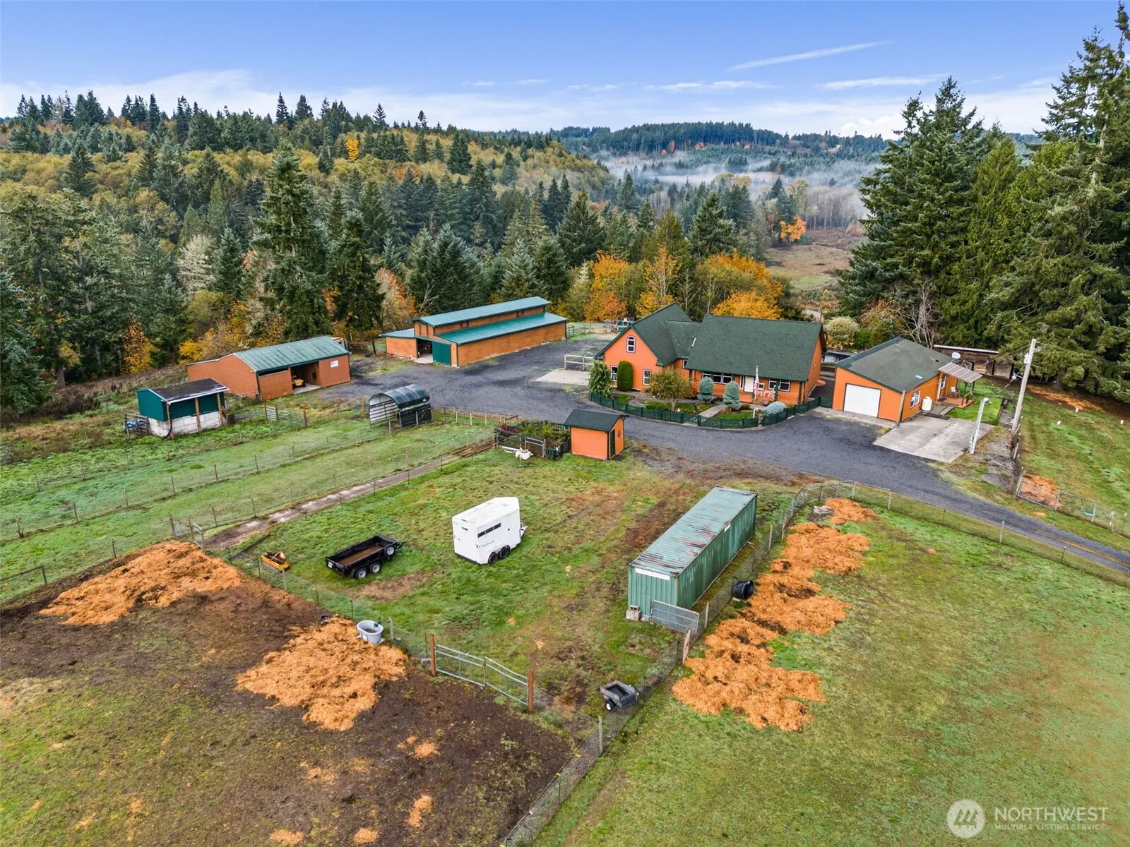 This is a dream equestrian property on 23 acres. 3 bed, 2 bath home w/ a bonus room that could be a 4th bedroom, plus a den. Features hardwood floors, heat pump, & river rock gas fireplace in the living room. Primary bedroom has walk-in closet double closets, 2nd fireplace, heated tile floors, & walk in shower. Enjoy extra living options with detached ADU, and a full RV hook up pad w/ dump station. Yard around the house is landscaped with a covered patio, lounging deck, gazebo, koi pond and fenced. Main barn with wash station, tack room, 10 stalls w/ rubber mats, and hay storage & elevator. 2nd barn has 3 stalls, 2nd tack room, and 4 paddocks. Chicken coop, goat barn, garden space, loafing & implement shed, and fenced & crossed fenced.