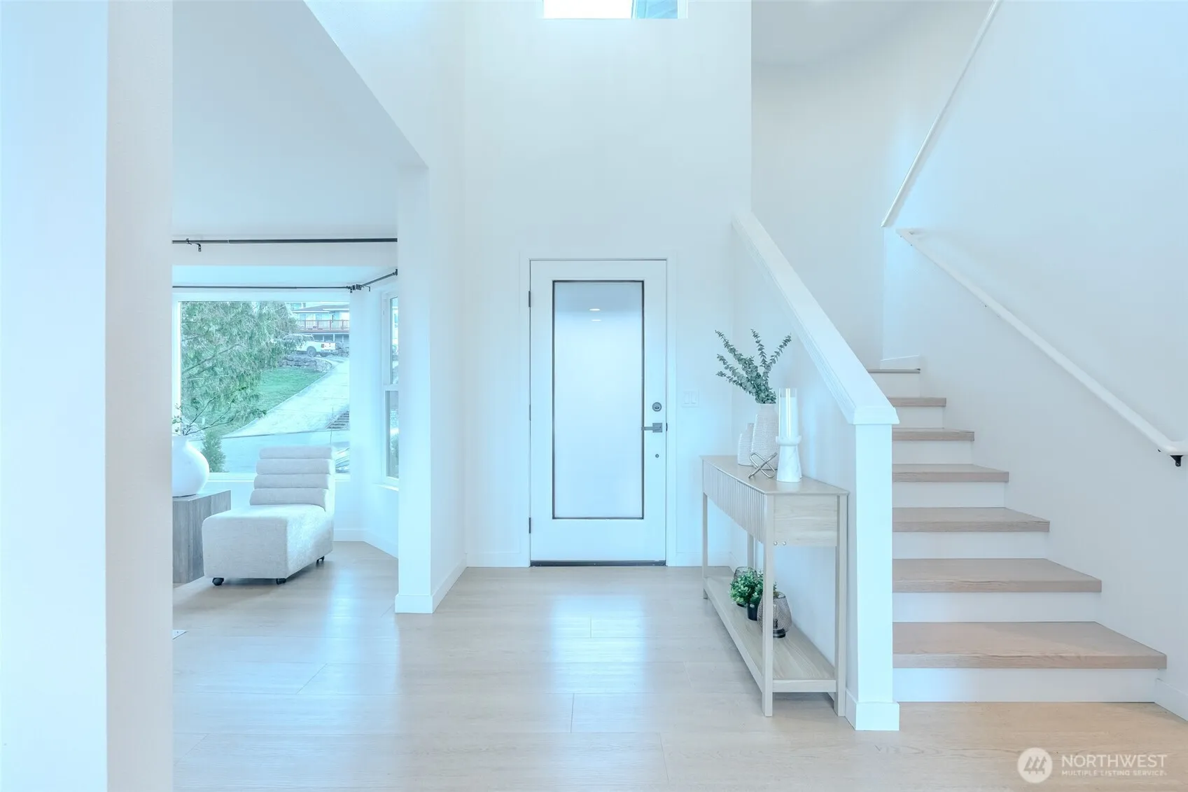 Experience elevated living in this beautifully remodeled home with sweeping Olympic Mountain and Puget Sound views. The expansive view deck is perfect for entertaining or unwinding, while the kitchen shines with quartz countertops, shaker cabinetry, and stainless steel appliances. The main level offers formal dining, living, and family rooms, plus a convenient half bath. Upstairs, the primary suite features stunning views and a spacious 5-piece bath, along with an additional bedroom and full bath. The lower level includes a generous rec room that opens to the newly landscaped backyard, two more bedrooms, and a full bath. Fresh paint and LVP flooring throughout. Complete with a 2-car garage and ample driveway parking.