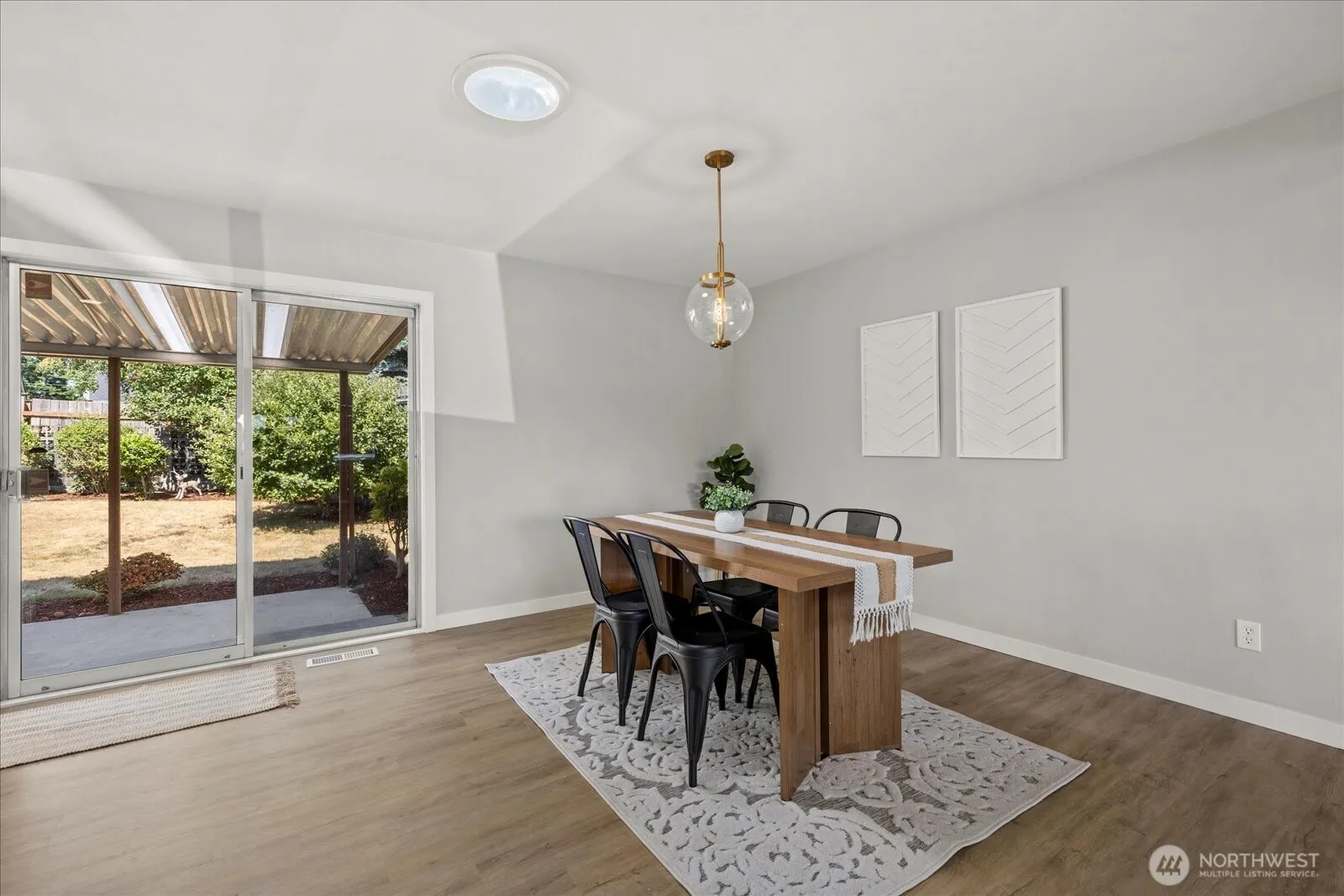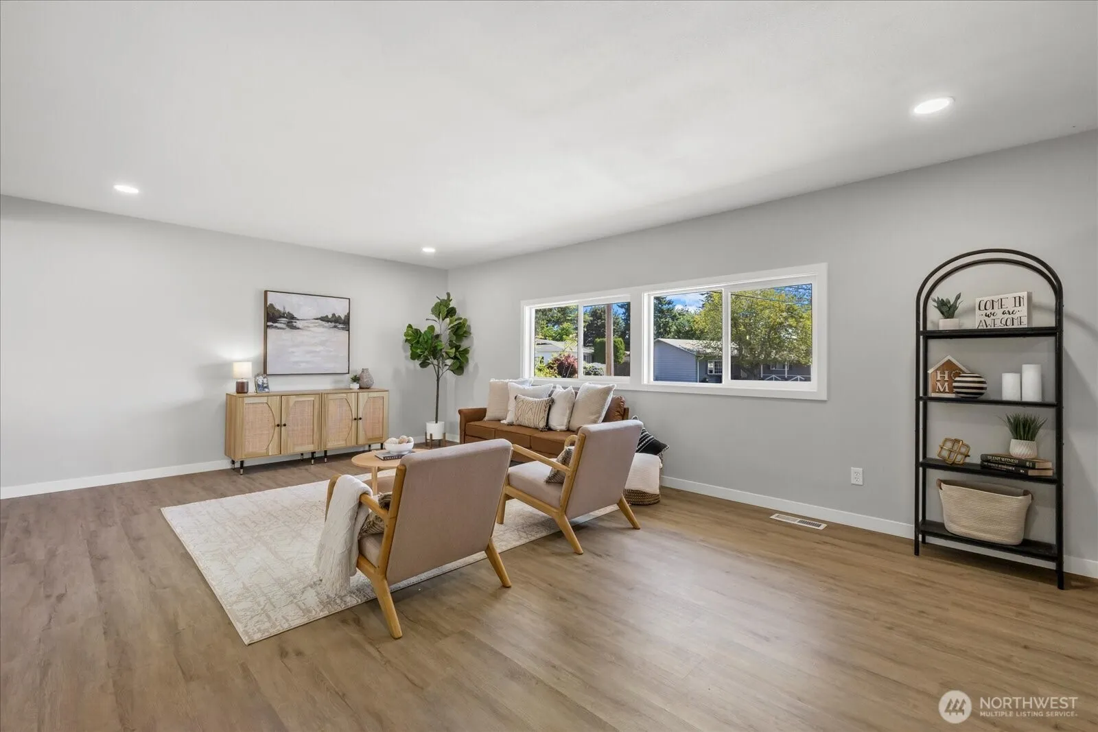 This beautiful, fully remodeled 3-bedroom, 1.75-bath rambler is ready to welcome you home. With modern touches throughout, you’ll step into a light-filled living room w/brand-new LVP flooring, leading to a bright kitchen featuring quartz counters, a tile backsplash, new cabinetry & SS appliances. The kitchen flows into the dining area w/access to the fully fenced backyard, complete with a covered patio, perfect for summer BBQs or quiet mornings. Both bathrooms have been fully renovated w/designer tile surrounds & quartz counters. All bedrooms feature fresh carpet. New interior & exterior paint. A large shed out back offers extra storage. Enjoy RV parking & a newer furnace too. Easy access to quality schools, freeways, and shopping.