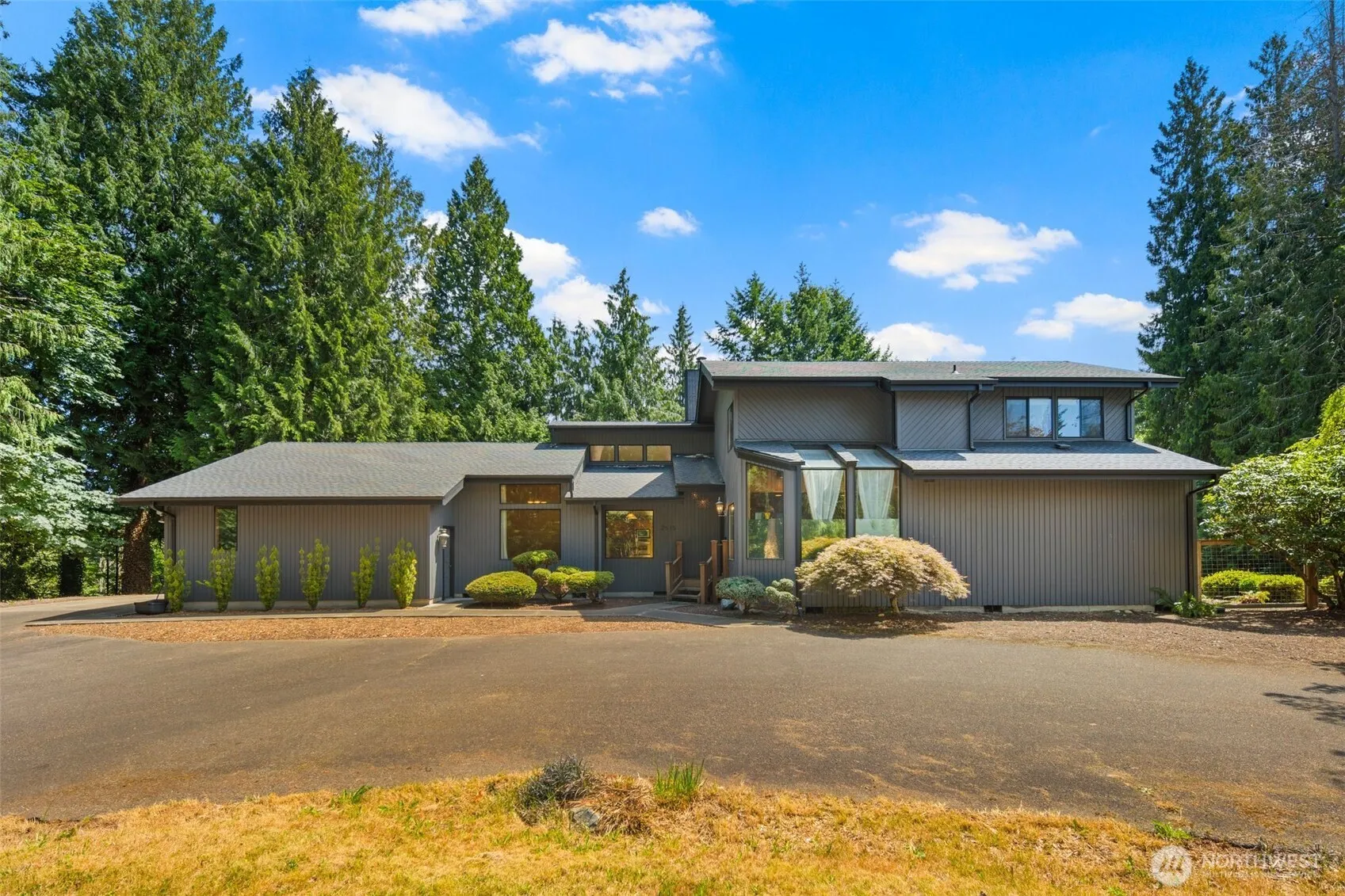 A Private Northwest Retreat! This custom-built home is tucked away in a peaceful, park-like setting with easy-care landscaping. Step inside to a bright and spacious open-concept layout featuring vaulted ceilings, a gourmet kitchen, formal dining area, breakfast nook, sunken living room with wet bar, and a beautiful open staircase leading to the loft and bedrooms. The main-level primary suite includes a luxurious double shower, private door to deck, and access to both a sunroom and a private sauna, perfect for unwinding while taking in the stunning views. The expansive daylight basement offers endless possibilities for living, entertaining, or relaxing. More than just your next home, this is your forever home.