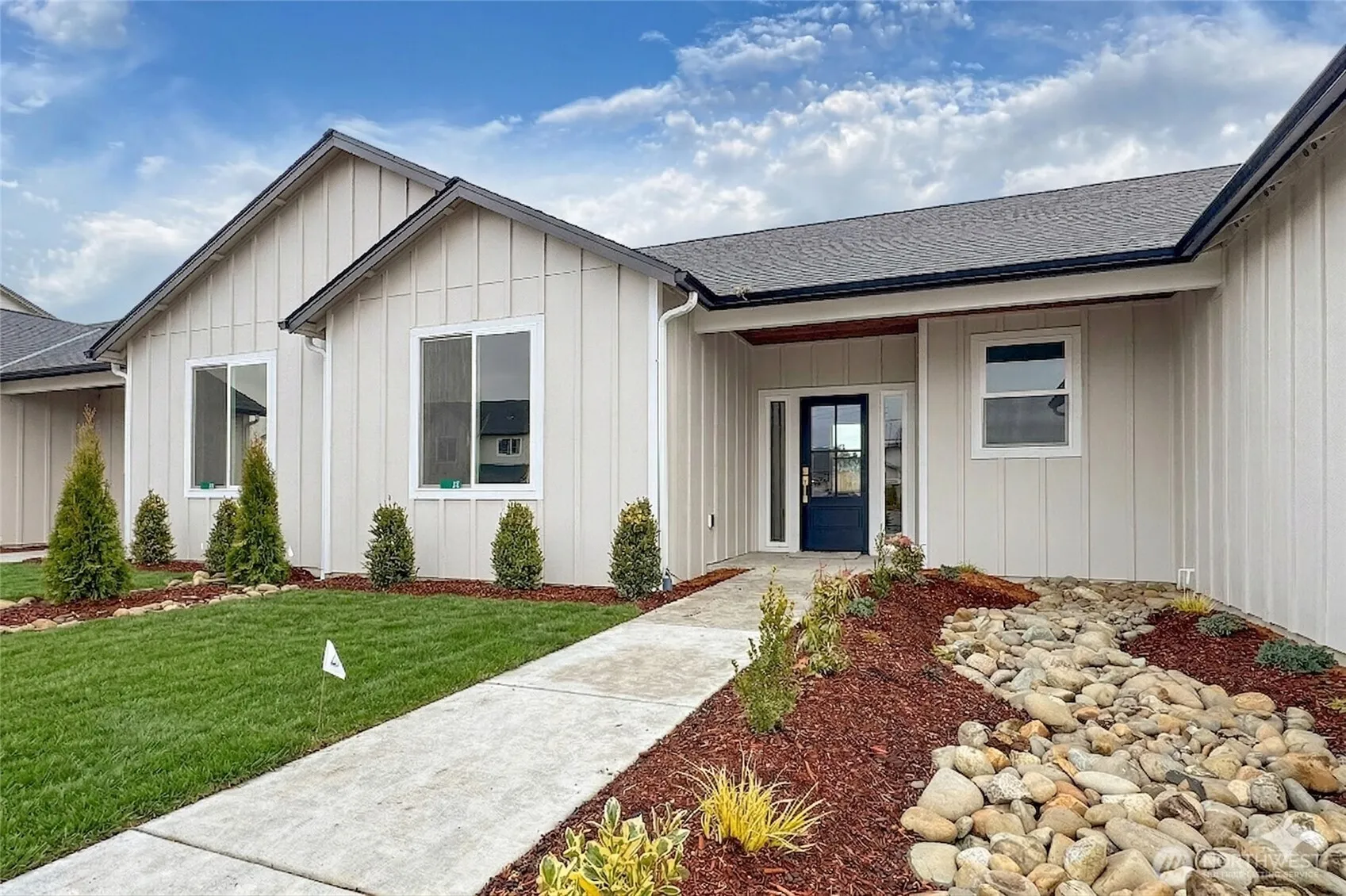 Discover these brand-new, high-end condos offering the perfect balance of affordability and convenience between Sequim and Port Angeles. Each home showcases attractive modern farmhouse elevations and energy-efficient design, featuring heat pumps and gas fireplaces for year-round comfort. The spacious floor plans offer three generous bedrooms, an abundance of natural light, and beautiful modern finishes. Outside, enjoy a private fenced backyard and an extra-deep garage perfect for storage or hobbies. Situated in a prime Carlsborg location with ample guest parking, you are walking distance to the Olympic Discovery Trail, transit lines, and favorite local shopping and dining.