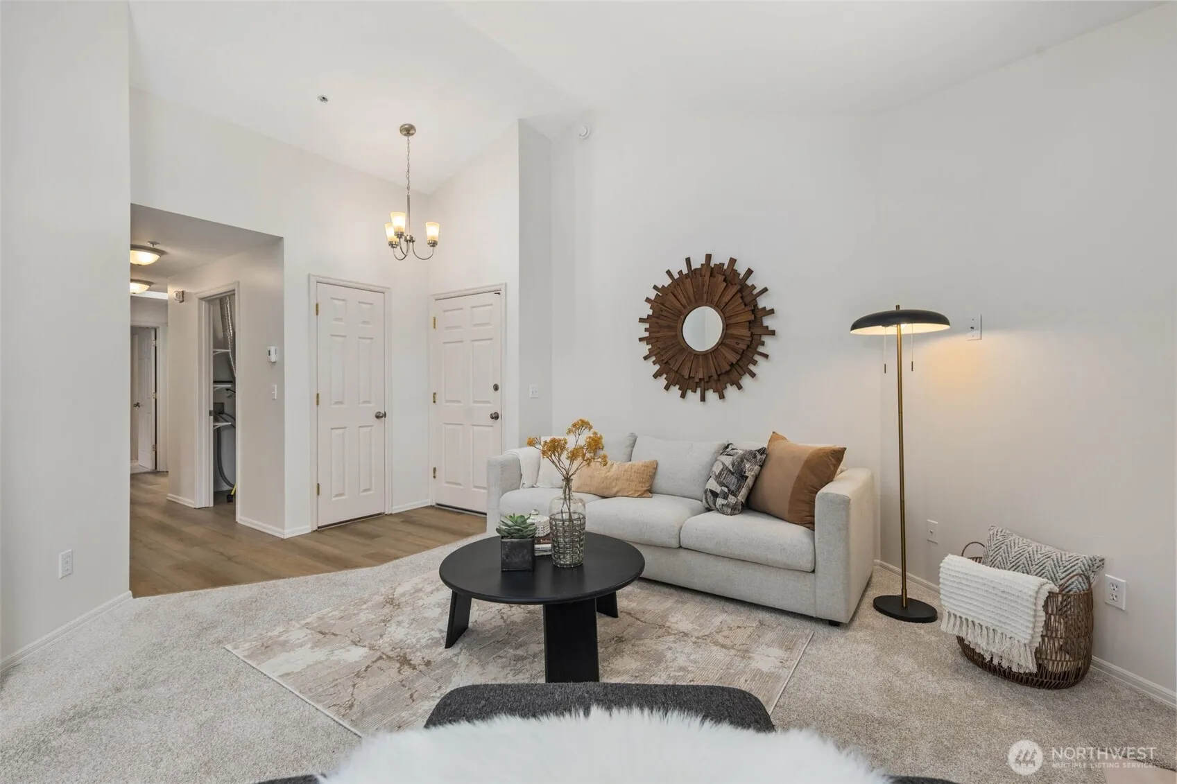 Sought-after top floor corner unit with territorial views in a quiet 10-unit 55+ community. This light-filled home offers an open floor plan with vaulted ceilings, cozy gas fireplace, and private sundeck. The chef’s kitchen features quartz counters, stainless appliances, and ample storage. Recent upgrades include fresh interior paint and wide-plank LVP flooring, creating a modern, move-in ready feel. The primary suite includes a spacious bath, while a large second bedroom and bathroom add flexibility. Secure garage parking for two cars, a storage unit, and elevator access provide convenience. Low HOA dues, well-maintained grounds, and easy access to bus lines, shops, parks, and freeway. Pre-inspected, turn-key, and a must-see!
